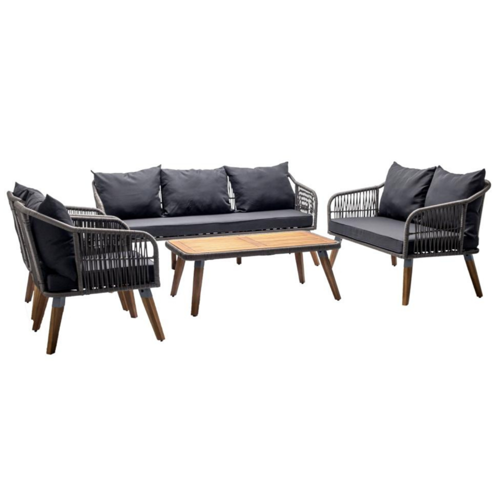 نوفر لكم في متجر ستار هومي قسم كامل متخصص بالجلسات الخارجية بتصاميم حصرية فخمة، ومنها طقم الجلسة هذا المصمم لسبعة أشخاص والمزود بكنب وكراسي مصنوعة من أجود المواد المتينة ومزودة بطراحات للمقعد ومسند الظهر لتوفير الراحة أثناء الجلوس، كما يأتي مع الطقم طاولة وسط مستطيلة.