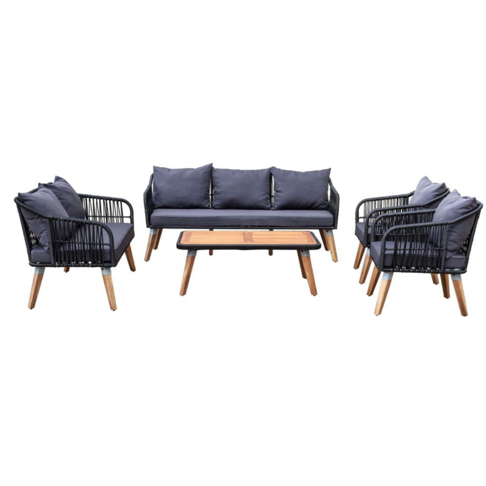 نوفر لكم في متجر ستار هومي قسم كامل متخصص بالجلسات الخارجية بتصاميم حصرية فخمة، ومنها طقم الجلسة هذا المصمم لسبعة أشخاص والمزود بكنب وكراسي مصنوعة من أجود المواد المتينة ومزودة بطراحات للمقعد ومسند الظهر لتوفير الراحة أثناء الجلوس، كما يأتي مع الطقم طاولة وسط مستطيلة.