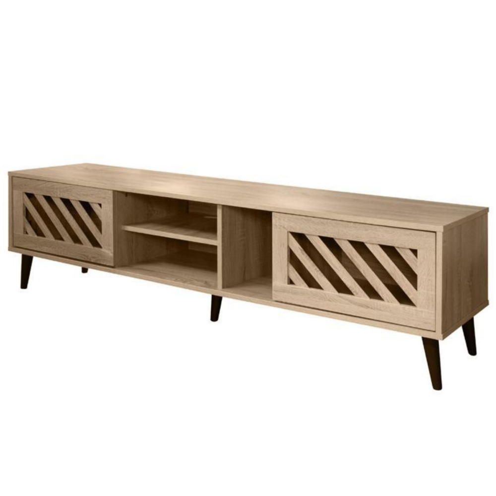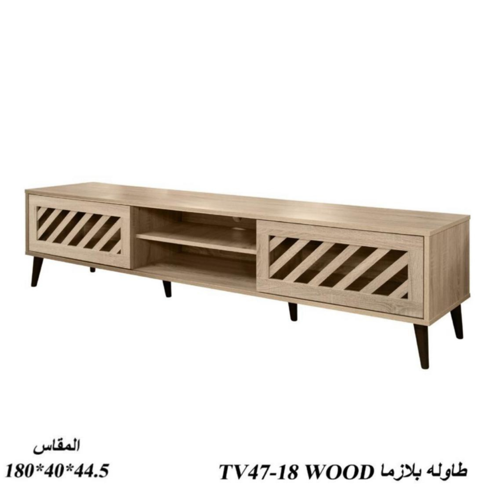 الفخامة، الأناقة والرقي تتمثل في تصميم طاولة البلازما هذه المصنوعة من أجود المواد المتينة المقاومة للخدش والمزودة بأرجل معدنية مقاومة للكسر والاهتراء، هذه الطاولة مزودة بخزن جانبية مزينة بقضبان مائلة تضفي لمسة هندسية مميزة للتصميم.