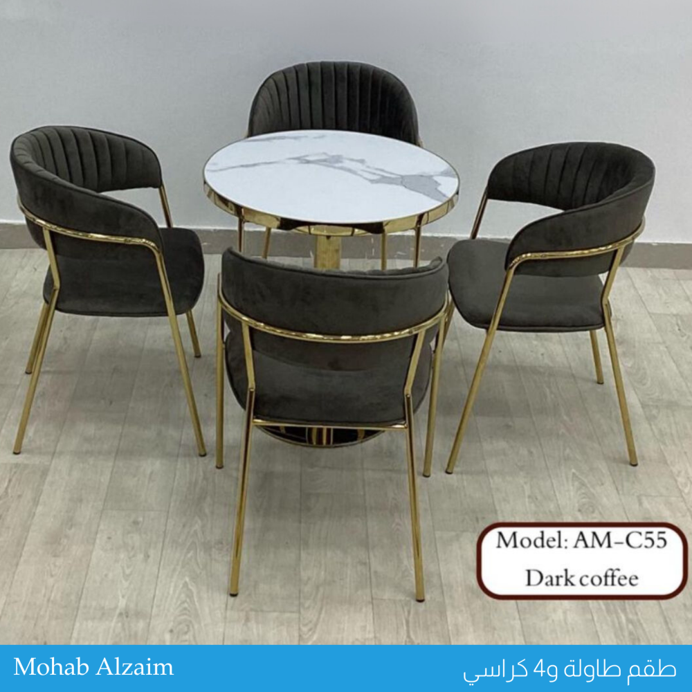 3. طقم طاولة و4 كراسي استيل كوفي غامق