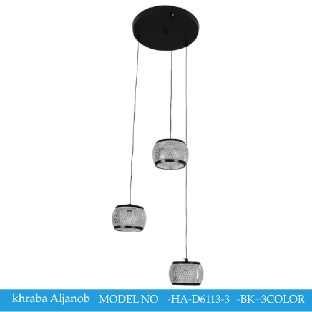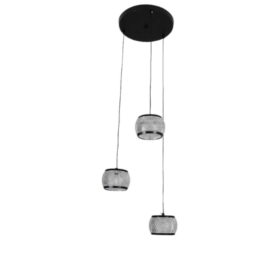 إضاءة أنيقة بثلاث وحدات متدلية بتصميم عصري جذاب تضيف لمسة فخامة للمكان. تتميز بمصابيح زجاجية شفافة مزخرفة مع إطار معدني باللون الأسود يمنحها مظهراً راقياً ينسجم مع مختلف أنواع الديكورات الحديثة. توفر إضاءة متوازنة وواضحة لتجعل الغرفة أكثر إشراقاً وحيوية، سواء في غرف المعيشة أو صالات الطعام أو حتى المداخل.