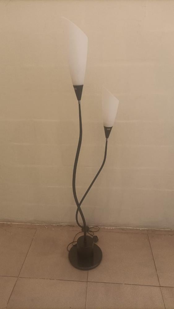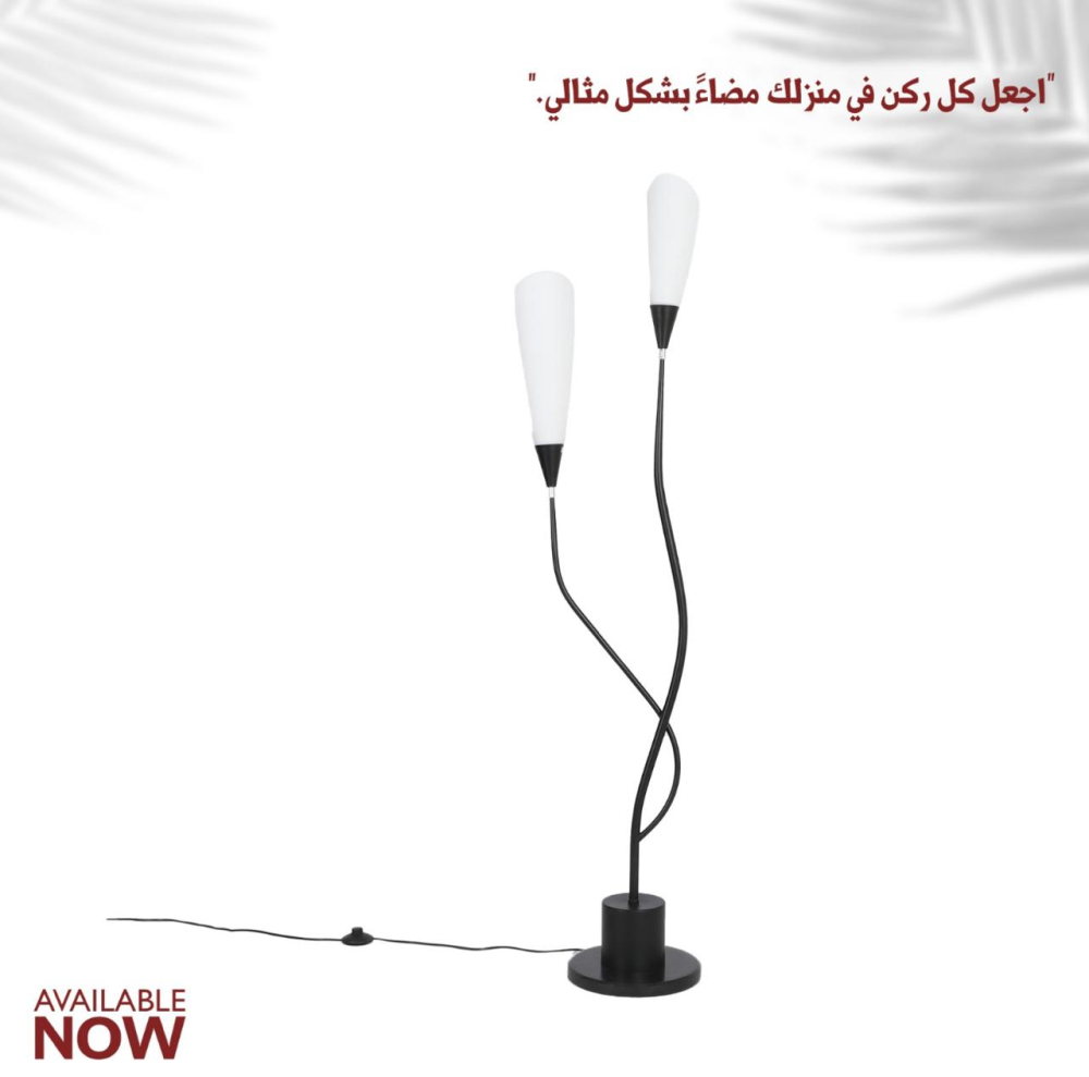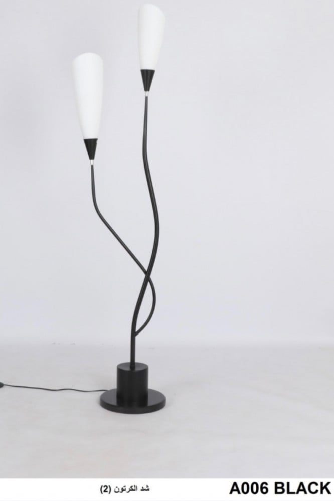 اباجورة طويلة تتميز بتصميم مودرن مزودة بسيقان تتداخل مع بعضها بتصميم انسيابي لتحمل مصباحين في الأعلى، هذه الاباجورة يمكن وضعها في زاوية غرفة المعيشة أو الضيوف لإضافة لمسة من الرقة والعصرية لديكور الغرفة وذلك بفضل تصميمها البسيط الذي يتماشى مع الاتجاه المودرن في الديكور المنزلي لوقتنا الحالي.
