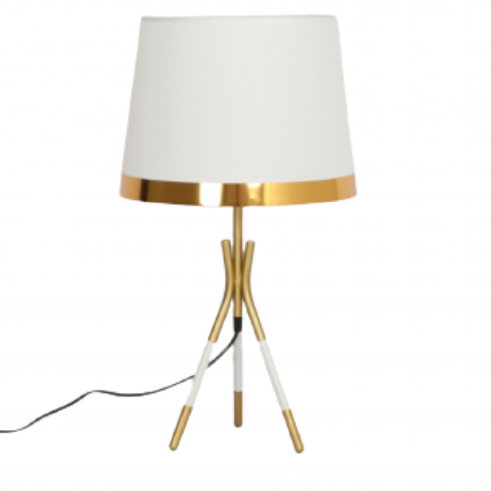 انيري منزلك مع تشكيلة الاباجورات المقدمة لك من متجر ستار هومي، ومنها هذا الابجورة المميزة بتصميمها العصري المصنوع من أجود أنواع الستانس ستيل المطلي، والمصممة بشكل حامل مؤلف من ثلاث أرجل وقبعة علوية مزينة باللونين الأبيض والذهبي لإضافة لمسة من التميز والتباين اللوني للتصميم.