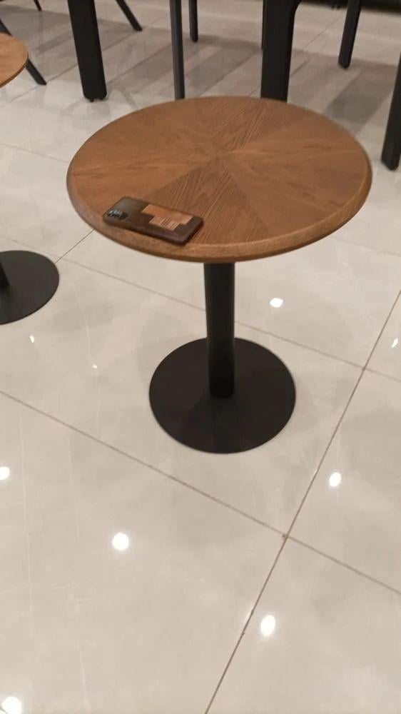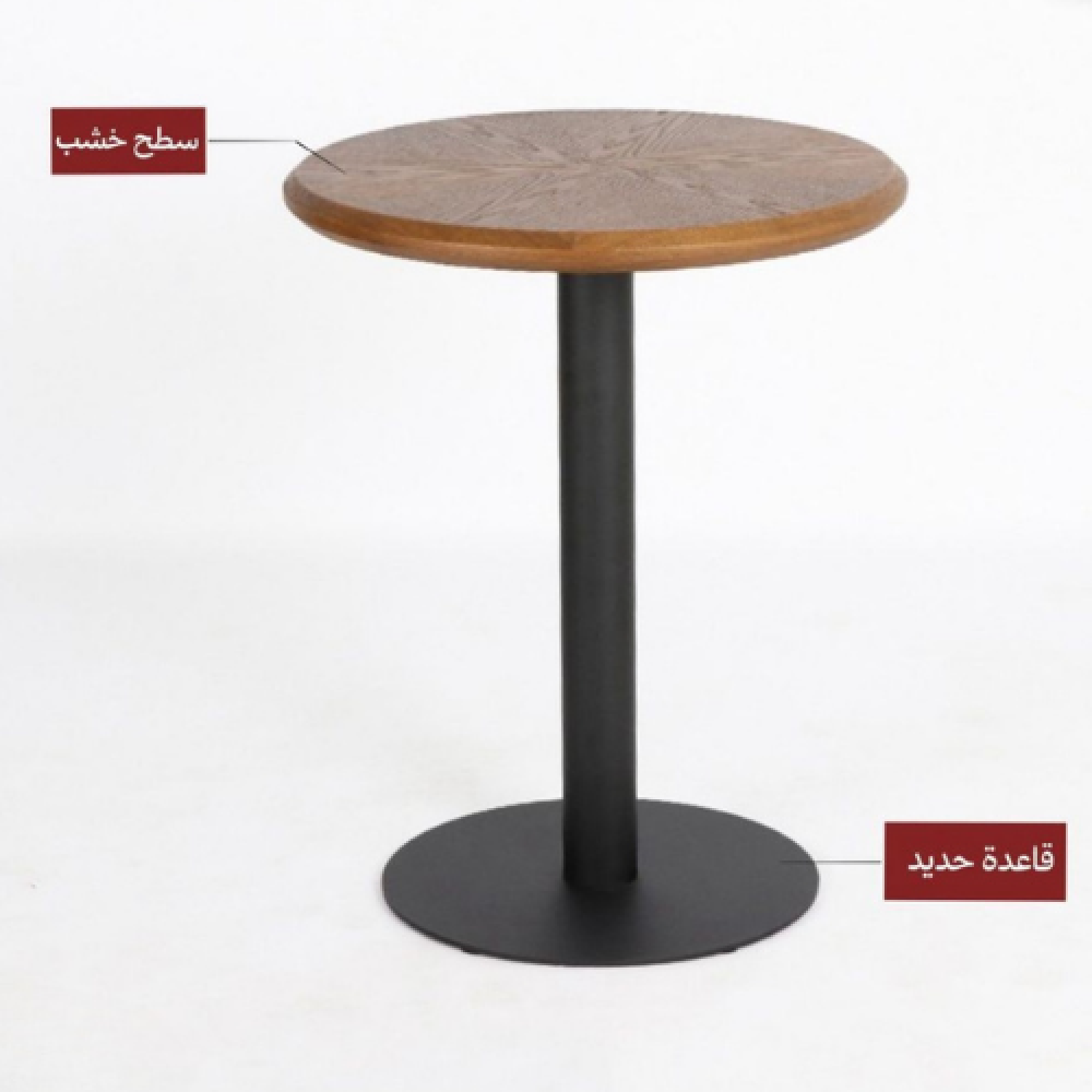 طاولة كوفي ذات تصميم مودرن راقٍ، بقطر 60 سم وارتفاع 75 سم. السطح مصنوع من الخشب، والقِاعدة من الحديد لتوفير دعم وثبات مثالي. تجمع بين الدفء الطبيعي للخشب وصلابة الحديد، مما يجعلها قطعة مثالية لصالونات الجلوس أو الكافيهات ذات الذوق المميز.