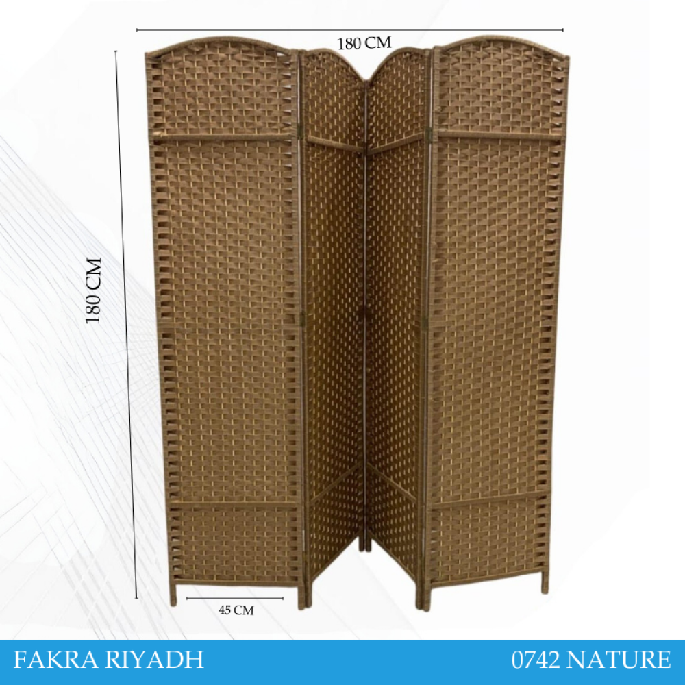 بارتشن خشبي مميز يتكون من 4 أبواب، مثالي لتقسيم المساحات وإضفاء لمسة جمالية على منزلك أو مكتبك. يتميز هذا البارتشن بجودة عالية في الصنع، حيث يستخدم خشب متين يدوم طويلاً ويمنحك الخصوصية المطلوبة دون التأثير على أناقة المكان. تصميمه الأنيق يتيح لك استخدامه في أي غرفة، سواء كانت صالة استقبال، غرفة عمل، أو حتى غرفة نوم.