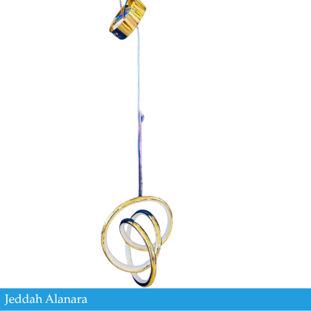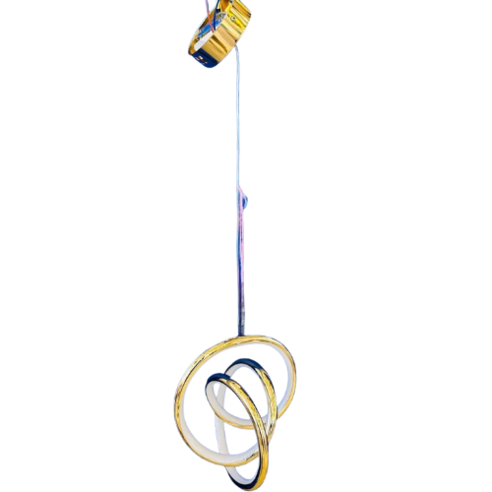 إضاءة مميزة بتصميم عصري فريد يتكون من ثلاث حلقات LED متداخلة بألوان الذهب والأبيض. تعليقة أنيقة تضيف لمسة فنية ولمعان لافت للمجالس، غرف النوم، أو زوايا الاستقبال. مناسبة لمحبي التصميمات العصرية والبسيطة، وتأتي بحجم عملي وسعر منافس. تبعث نورًا مريحًا وتكمل ديكور المكان بلمسة فخامة راقية.