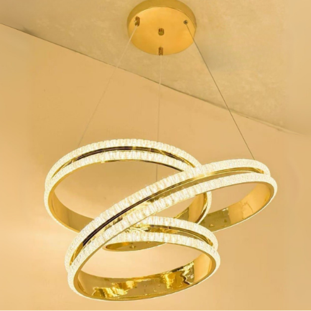 إضاءة معلقة بتصميم بيضاوي متشابك تضيف لمسة أنيقة للمكان.