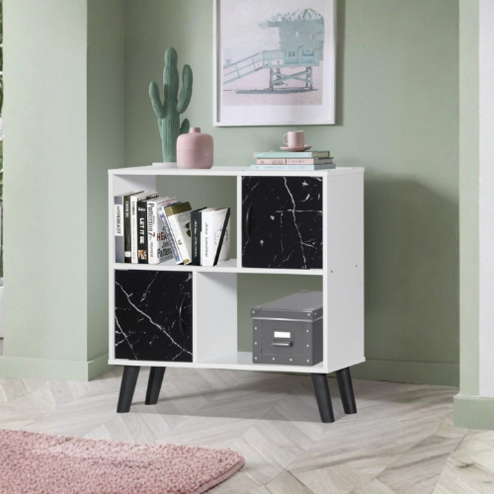 خزانة كتب 2ارفف لون ابيض واسود رخامي