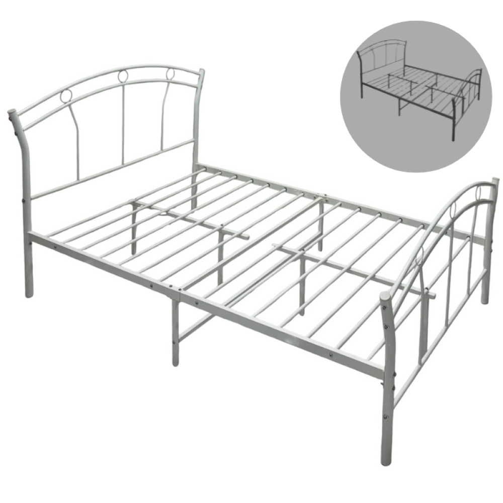 لاستكمال ديكور غرفة النوم نقدم لكم سرير النوم الرائع هذا المصنوع من أجود أنواع المعادن المتينة والمقاومة للكسر لسنين طويلة، هذا السرير مميز بمسند ظهر ومسند أمامي مزينان بقضبان معدنية منحنية تضفي لمسة من التميز والانسيابية للتصميم، نوفره لكم في متجرنا بقياسين ولونين لاختيار المناسب.