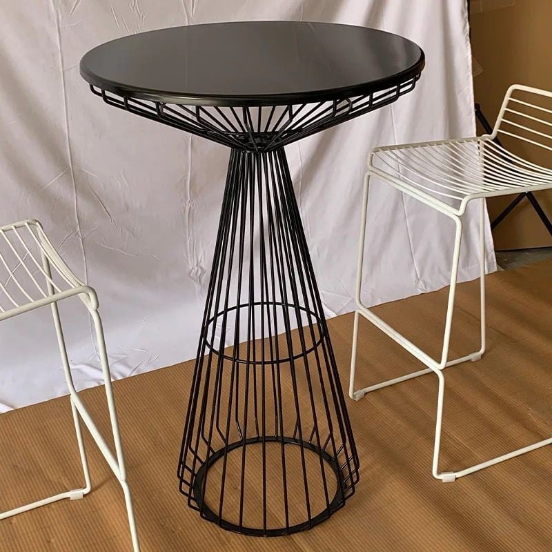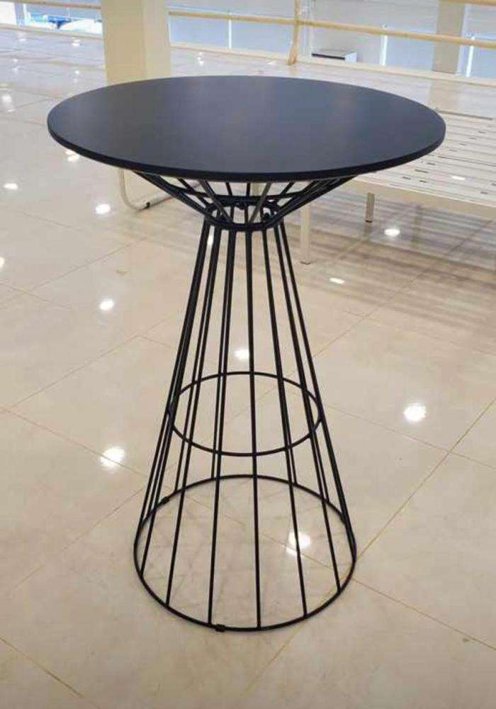 طاولة بار بتصميم مرتفع مزودة بقاعدة من أسلاك الحديد المتعاشقة التي تضفي لمسة من التميز للتصميم، وسطح دائري مصنوع من أجود المواد المقاومة للخدش، هذه الطاولة مناسبة لديكور المقاهي والمطاعم أو للمطابخ المنزلية.