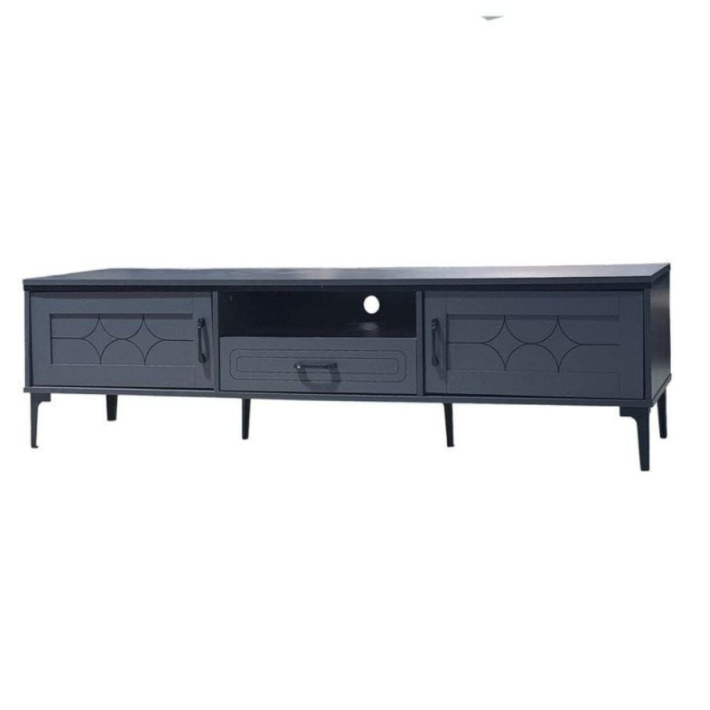 طاولة تلفزيون مصنوعة من أجود المواد المقاومة للكسر والاهتراء، مزودة بأرجل معدنية توفر المزيد من الاستقرار والمتانة لتصميم الطاولة، هذه الطاولة تتميز بتفاصيلها البسيطة التي تضفي لمسة من الحداثة والعصرية لديكور غرفة المعيشة أو مكتب العمل.