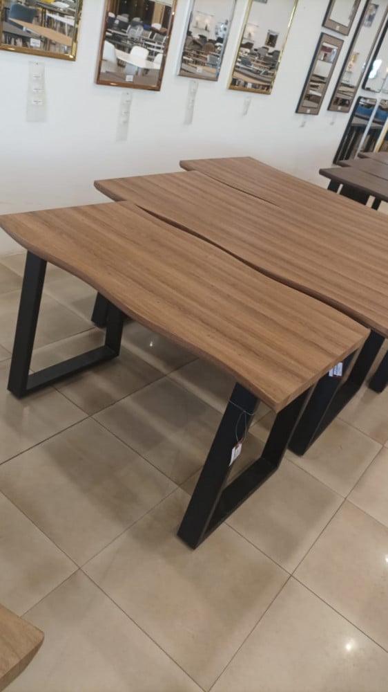 طاولة خشبية بارجل سوداء مربعة لون خشبي