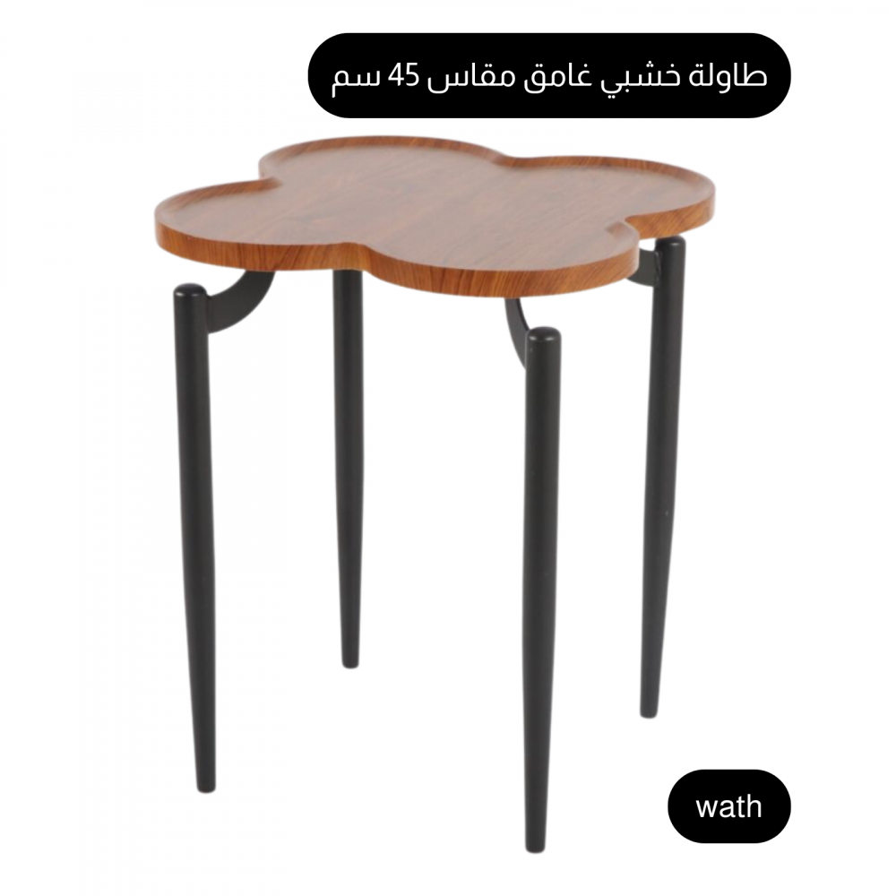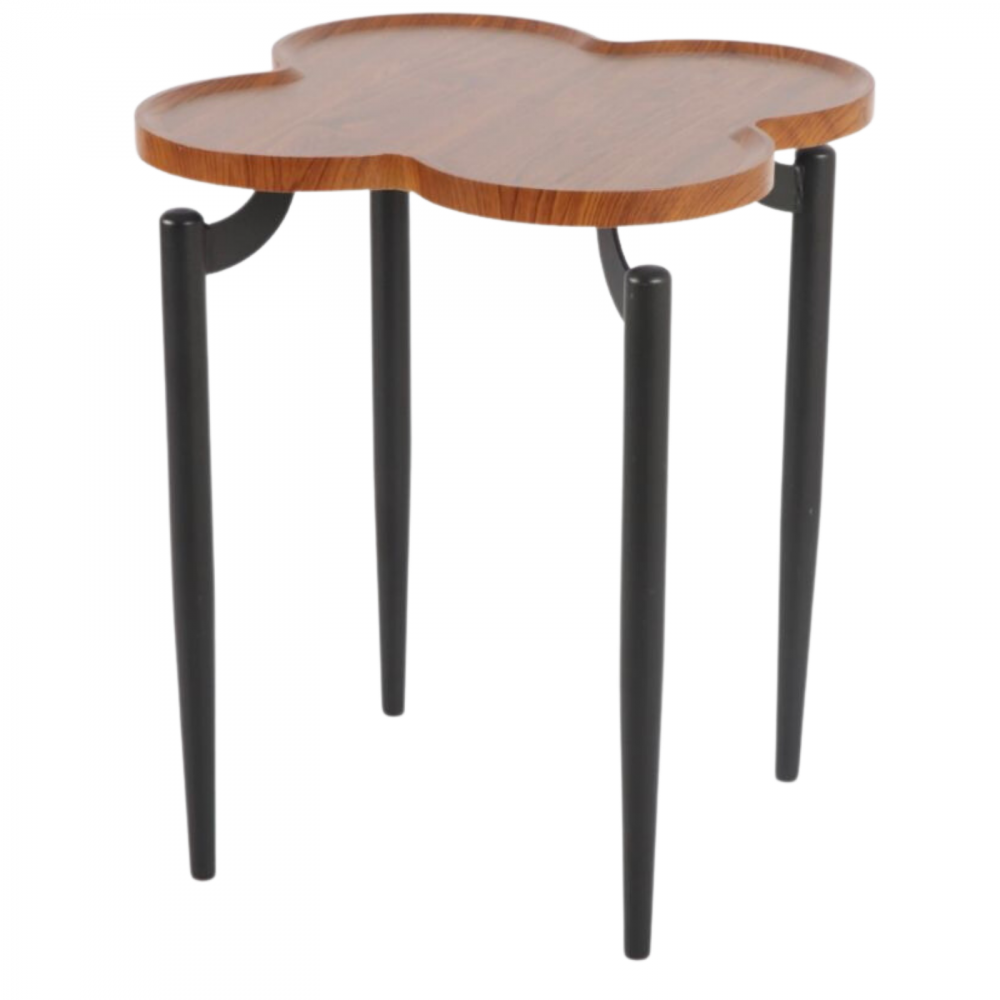 طاولة قهوة وخدمة مميزة بتصميم فريد بسطح بشكل زهرة مؤلفة من أربع بتلات لإضافة لمسة من التميز والعصرية لديكور الغرفة كما يتميز السطح بحافة جانبية لتوفير الحماية للأطباق من الانزلاق والكسر، هذه الطاولة مزودة بأرجل من الحديد المتين الذي يتميز بتحمله لأوزان ثقيلة.