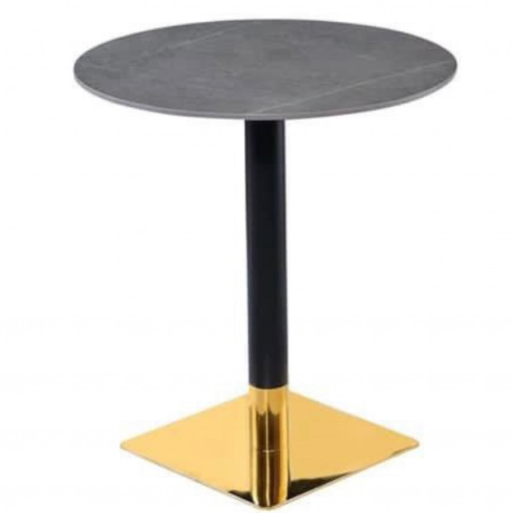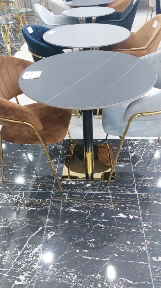 اطلبي سيدتي هذه الطاولة المصنوعة من السيراميك المقاوم للحرارة والأمطار بتصميم خفيف الوزن لسهولة نقل وتحريك الطاولة، يمكنك استخدامها في الحديقة الخارجية أو ضمن المنزل في المطبخ، هذه الطاولة تتميز بتصميم دائري مزودة بحامل مطلي باللون الذهبي لإضافة لمسة من التميز والعصرية للتصميم.