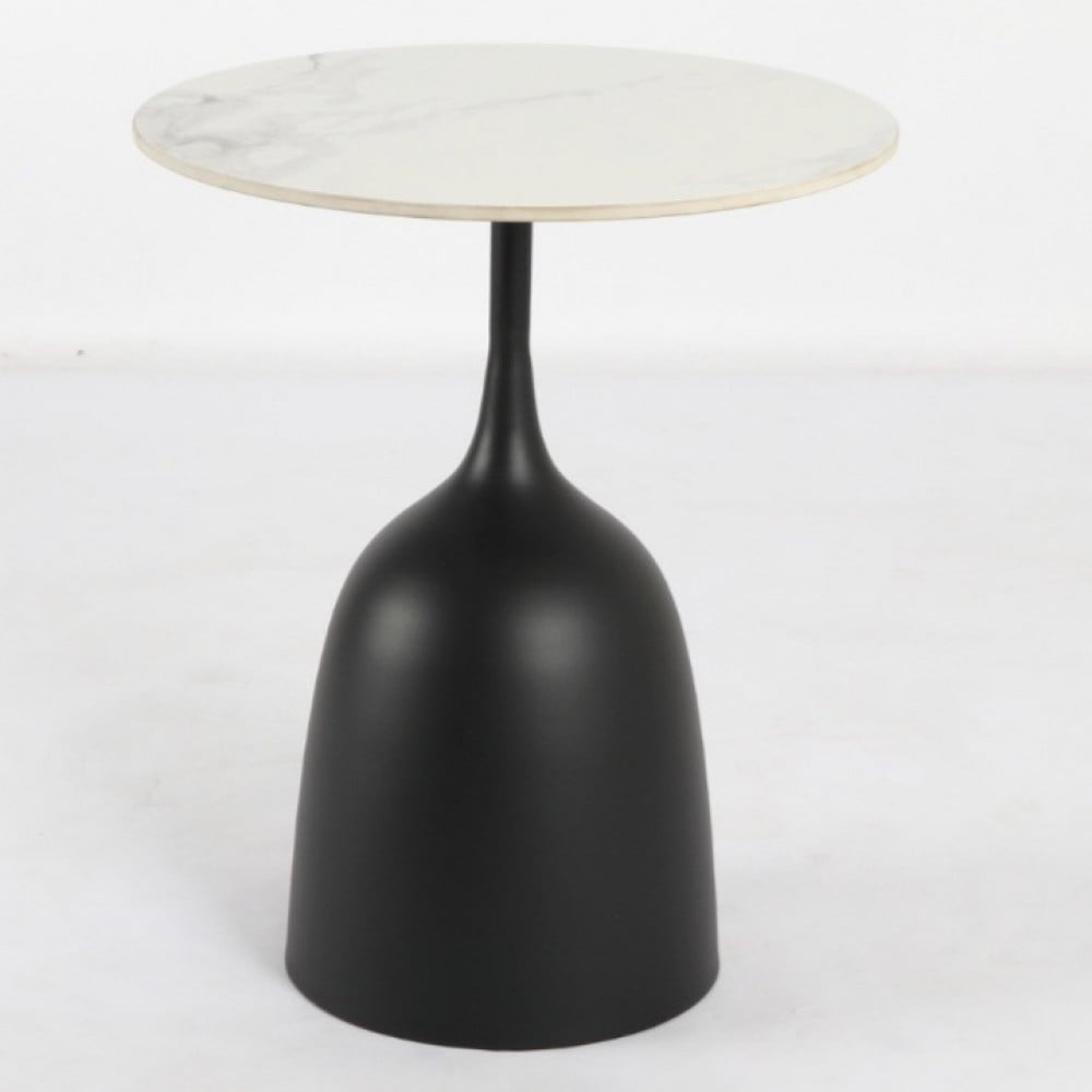 طاولة كوفي وخدمة تتميز بتصميم عصري يضفي لمسة من الحداثة إلى ديكور الغرفة، مصنوعة من حجر البورسلان الفاخر بتصميم دائري ومزودة بحامل مصمم بشكل أسطوانة متدرجة في العرض نحو الأعلى لإضافة لمسة من الانسيابية والنعومة لتصميم الطاولة، هذه الطاولة مناسبة لغرفة المعيشة أو لركن القهوة أو حتى للحديقة الخارجية.