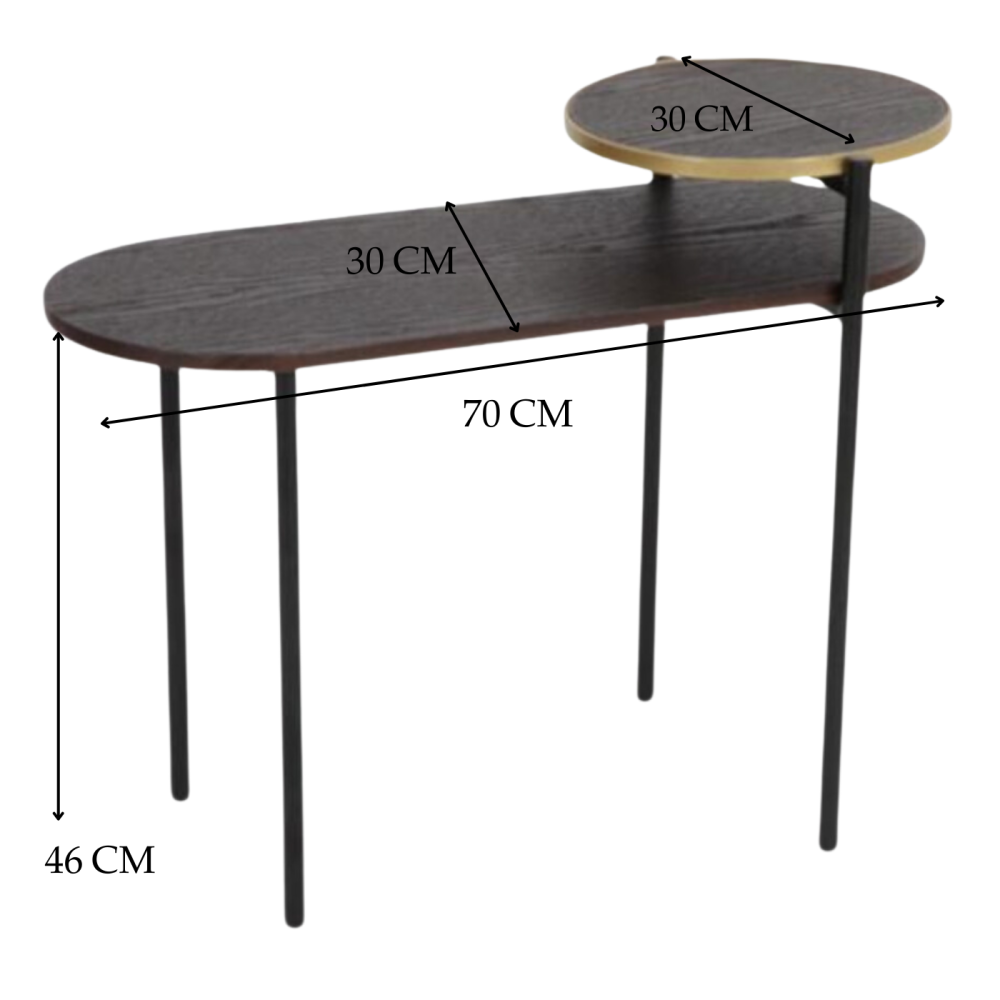 طاولة كونسول انيقة وفخمة مميزة بتصميم بسطح مستطيل بحواف منحنية تضفي لمسة من الانسيابية للتصميم، كما أنها مزودة برف علوي جانبي بشكل دائري يمكنك استخدامه لعرض القطعة المفضلة أو لإضافة لمسة من الحياة من خلال وضع ركن الزرع.