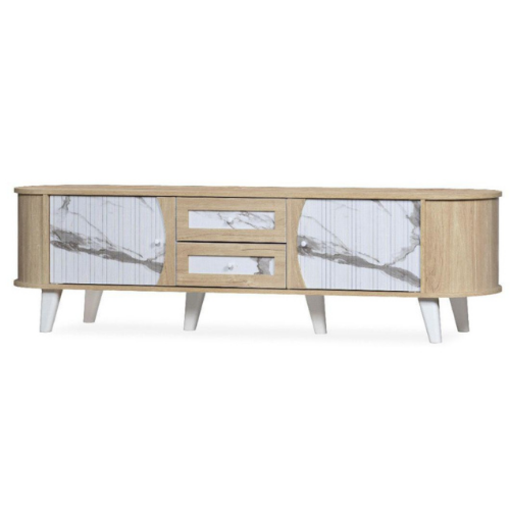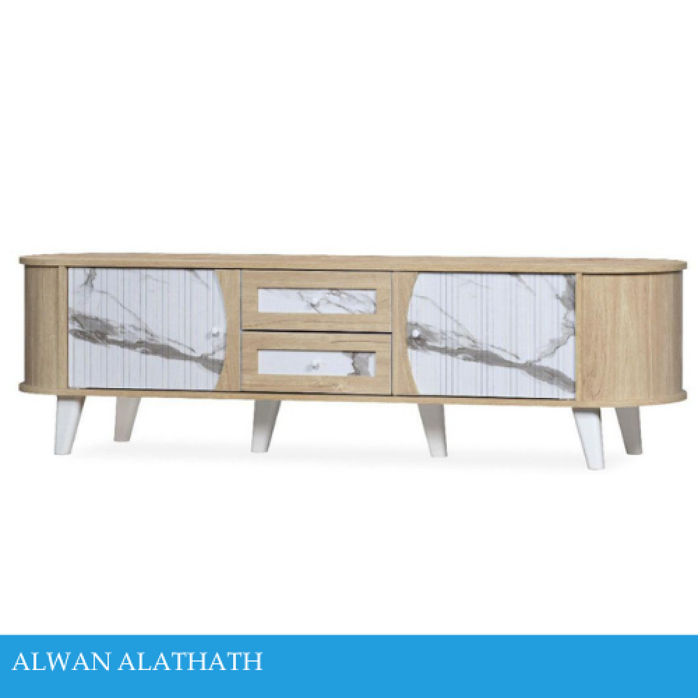 طاولة تلفزيون مودرن بتصميم عملي، متوفرة بمقاسين لتناسب مختلف المساحات وتوفر لك تخزينًا منظمًا مع لمسة ديكور عصرية.