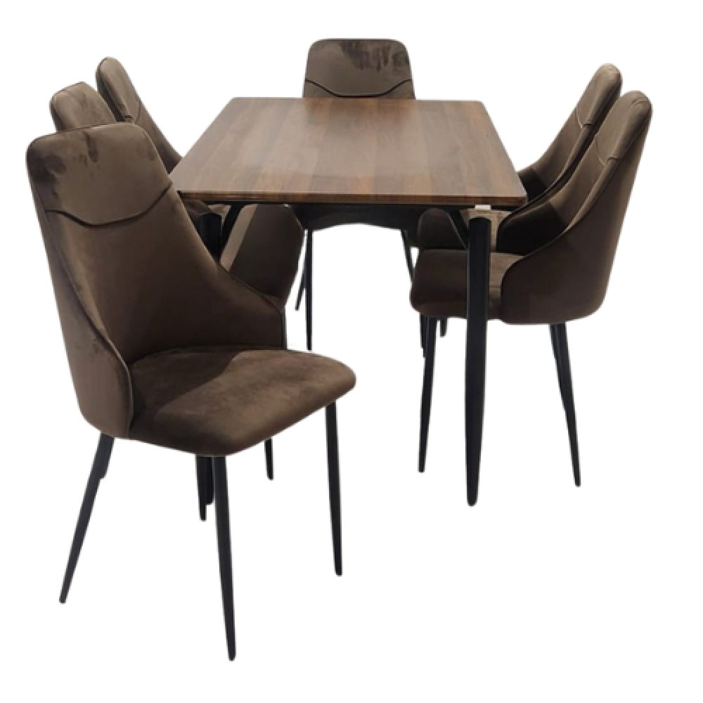 طاولة طعام بلون بني تتسع لـ 6 كراسي، تصميم عملي يتماشى مع ديكور منزلك ويوفر راحة وجمالية في آن واحد.