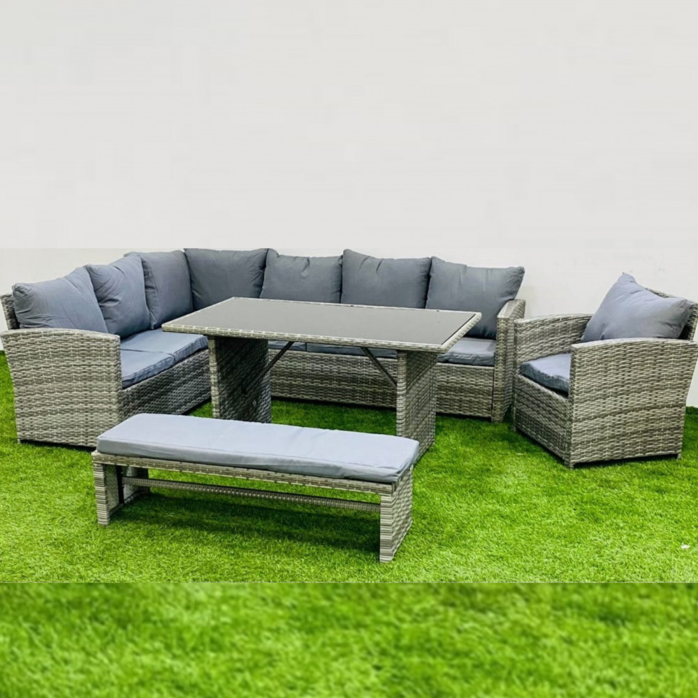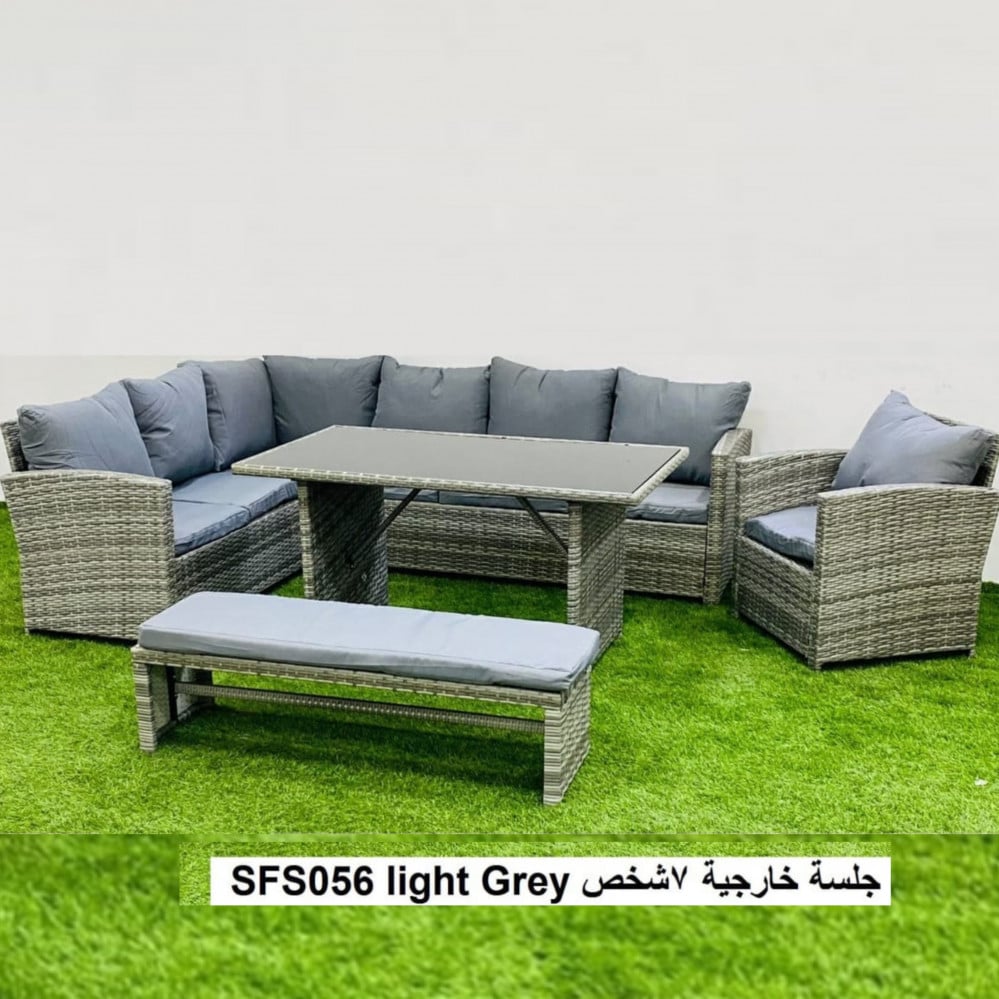 طقم جلسة خيزران خارجي بلون رمادي فاتح يتميز بمظهر عصري هادئ، مثالي للاستخدام في الحديقة، الشرفة، الفناء أو الحدائق. يتميز بالأناقة والراحة، ليمنحك أجواء استرخاء راقية في الهواء الطلق.
