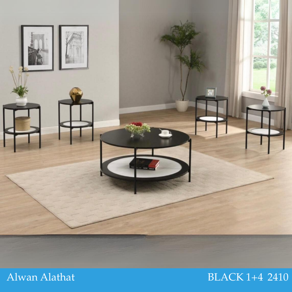 - مؤلف من طاولة وسط و4 طاولات جانبية