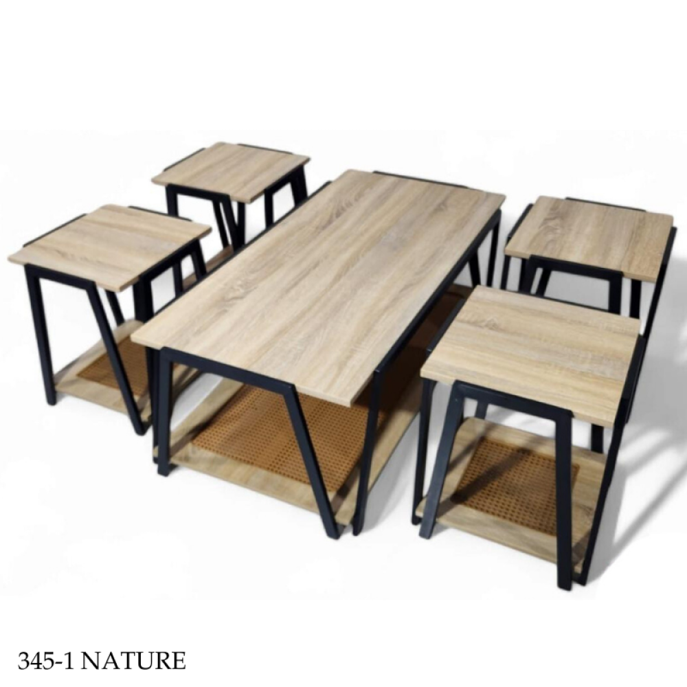 طقم طاولات خدمة مصنوعة من أجود المواد المتينة، مؤلف من طاولة وسط وأربعة طاولات جانبية، الطاولات مزودة بسطح مصنوع من أجود المواد المصقولة بالإضافة لرف سفلي مصنوع من الراتان الذي يضفي لمسة من التميز والفخامة لتصميم الطاولات، نوفرها لكم في متجر ستار هومي بعدة ألوان لاختيار المناسب منها للديكور المحيط.