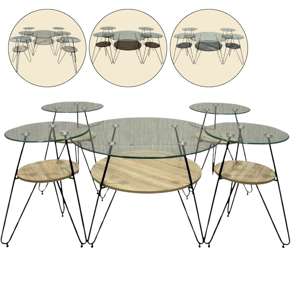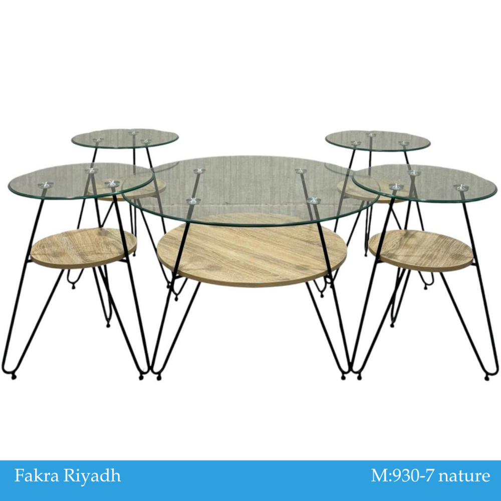 استعد لتحويل مساحة استقبال منزلك بأناقة فائقة مع طاولات الخدمة هذه المميزة بتصميم عصري وراقي يضفي لمسة من الفخامة على أي مكان، تتألف المجموعة من اربعة طاولات جانبية وطاولة رئيسية، تتميز بسطح زجاجي رائع ومتين، بالإضافة لحامل مصنوع من مواد عالية الجودة مما يمنحها استقرارًا وصلابة.