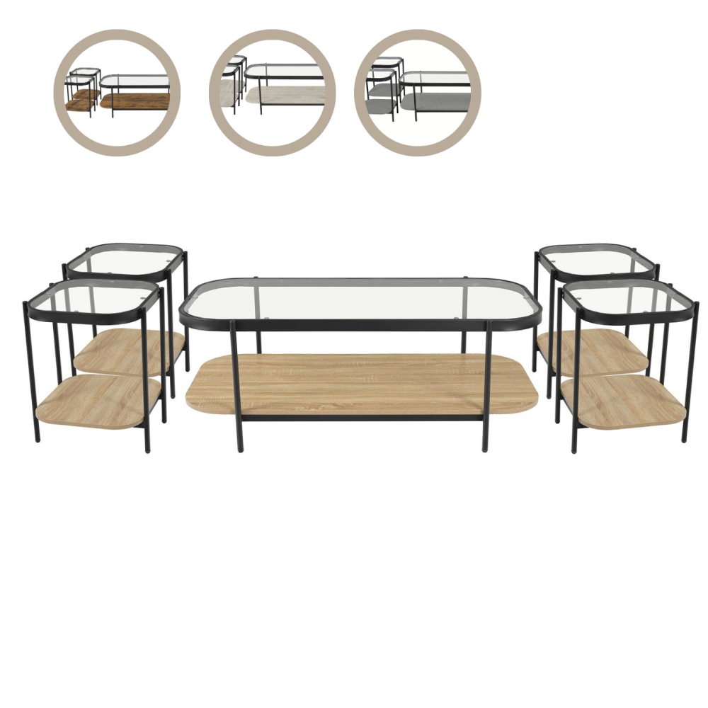 استعد لتحويل مساحة استقبال منزلك بأناقة فائقة مع طاولات الخدمة هذه المميزة بتصميم عصري وراقي يضفي لمسة من الفخامة على أي مكان، تتألف المجموعة من اربعة طاولات جانبية وطاولة رئيسية، تتميز بسطح زجاجي رائع ومتين، بالإضافة لحامل مصنوع من مواد عالية الجودة مما يمنحها استقرارًا وصلابة.