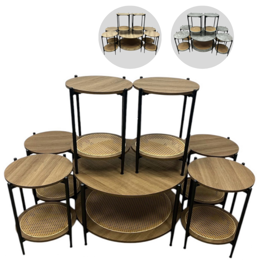 إذا كنت تبحث عن لمسة فريدة لمنزلك، فإن طقم طاولات الخدمة هذا هو الخيار الأمثل! حيث يجمع بين الأناقة والوظائف المتعددة، مصنوع من مواد عالية الجودة، ومزود برف سفلي من الراتان الفاخر الذي يضفي لمسة من الفخامة على التصميم، لا تفوت الفرصة للحصول على هذا الطقم المميز الذي سيجذب أنظار ضيوفك ويعزز من جمال مكانك. احصل عليه الآن وتمتع بتجربة خدمة استثنائية!