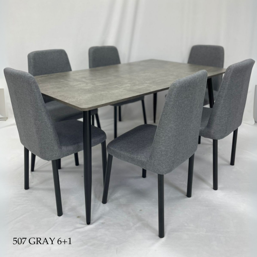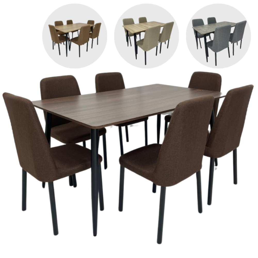 طقم طعام أنيق يجمع بين طاولة مستطيلة وعدّة كراسي (4 أو 6 حسب الاختيار)، متوفر بألوان متنوعة وتصميم عصري يناسب معظم المساحات.