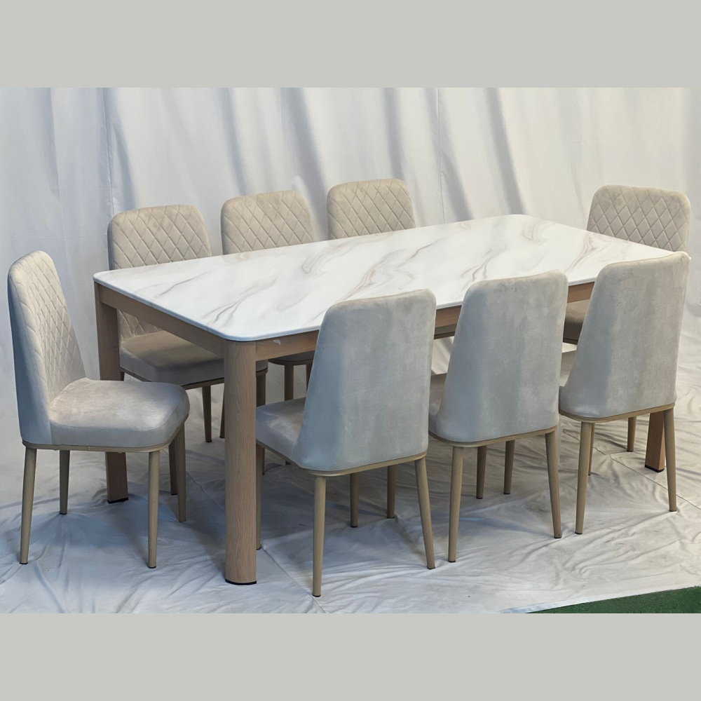 لا تتردد في طلب طقم طاولة طعام تفصيل هذا المؤلف من طاولة مصنوعة من أجود أنواع الرخام الطبيعي الفخم، وكراسي منجدة بالمخمل الناعم والطري المبطن بطبقة من الإسفنج الطري لتوفير الراحة أثناء الجلوس وتناول الطعام.