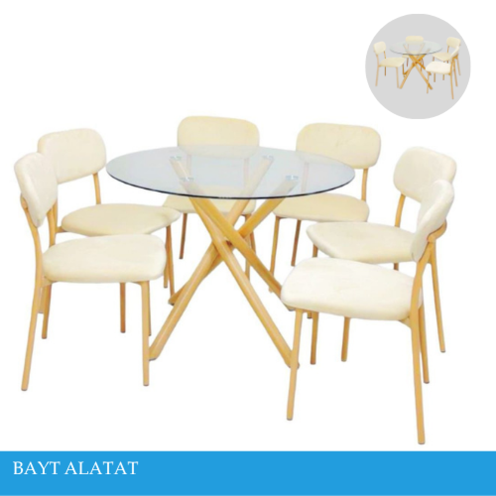 طقم طاولة طعام قزاز مودرن – 6 أو 4 كراسي – لون بيج