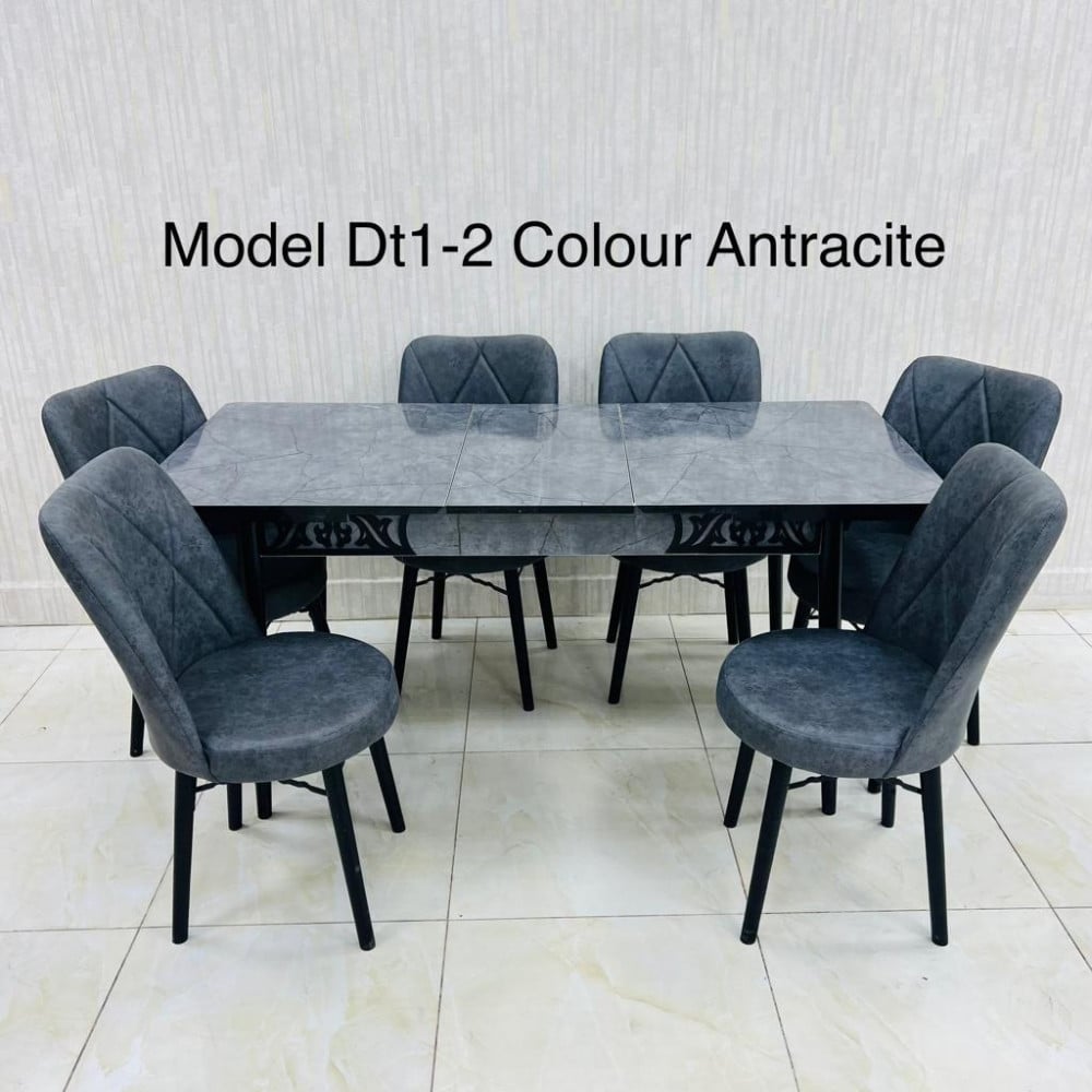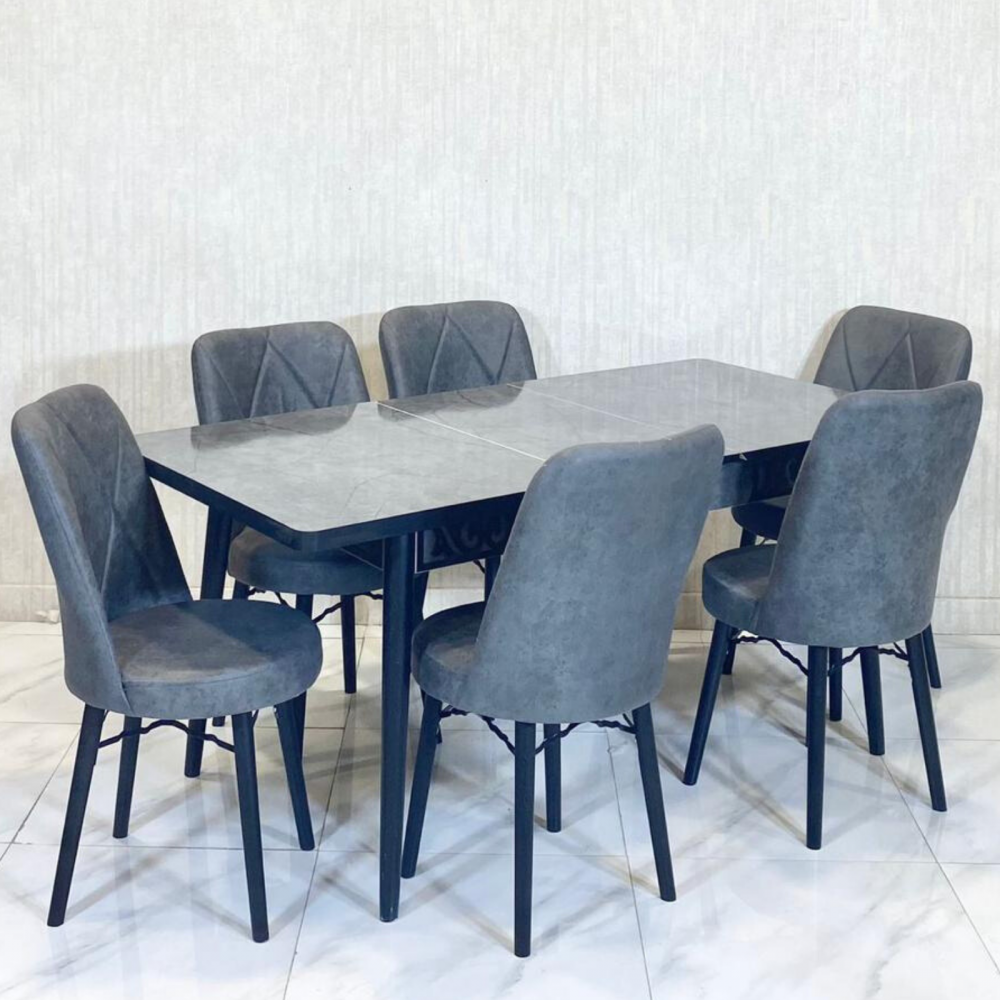 طقم طاولة طعام مصمم لستة انفر مؤلف من طاولة مصنوعة من أجود المواد الفاخرة تتميز بسطح لامع يضفي لمسة من الحداثة للتصميم، وستة كراسي مصممة بلون يشابه لون الطاولة للحصول على تصميم متناسق للطقم.