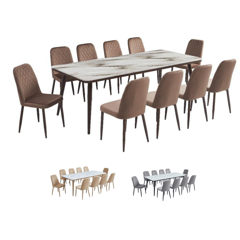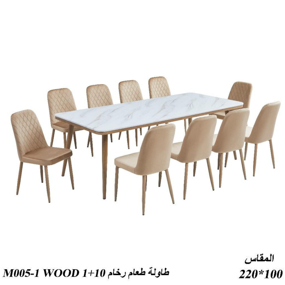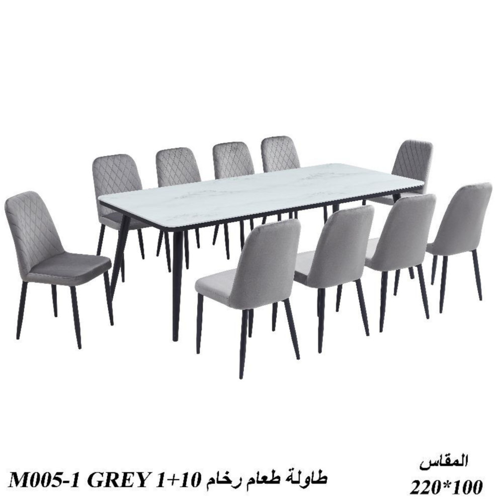 الفخامة، الاناقة والتميز تجدونها في طقم طاولة الطعام هذا المصنوع من اجود الخامات حيث تتميز الطاولة بسطح مصنوع من الرخام الطبيعي، وكراسي مبطنة بطبقة من الإسفنج الطري لتوفير الراحة أثناء الجلوس، تم تزويد الطاولة والكراسي بأرجل من الحديد المتين المقاوم للكسر والاهتراء.