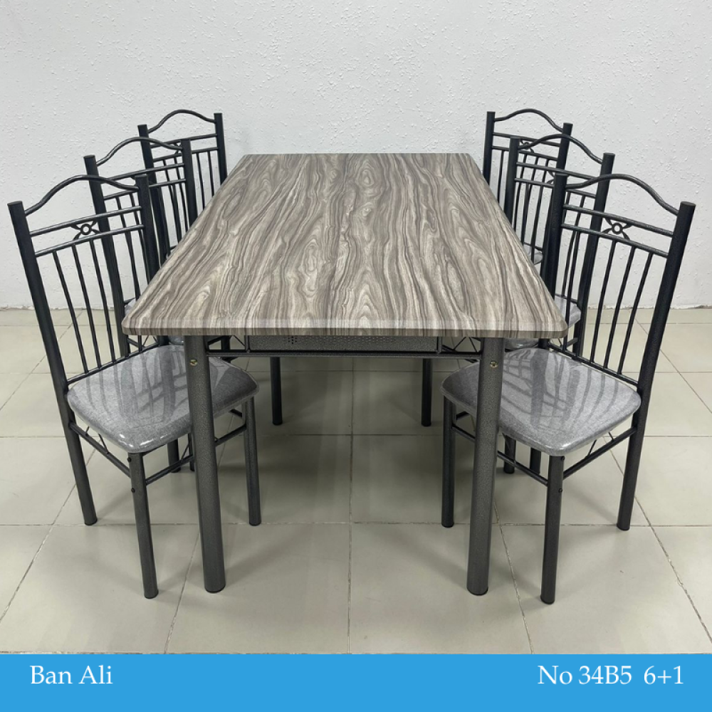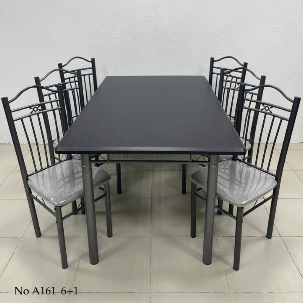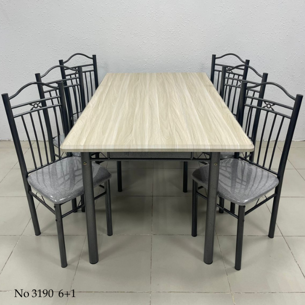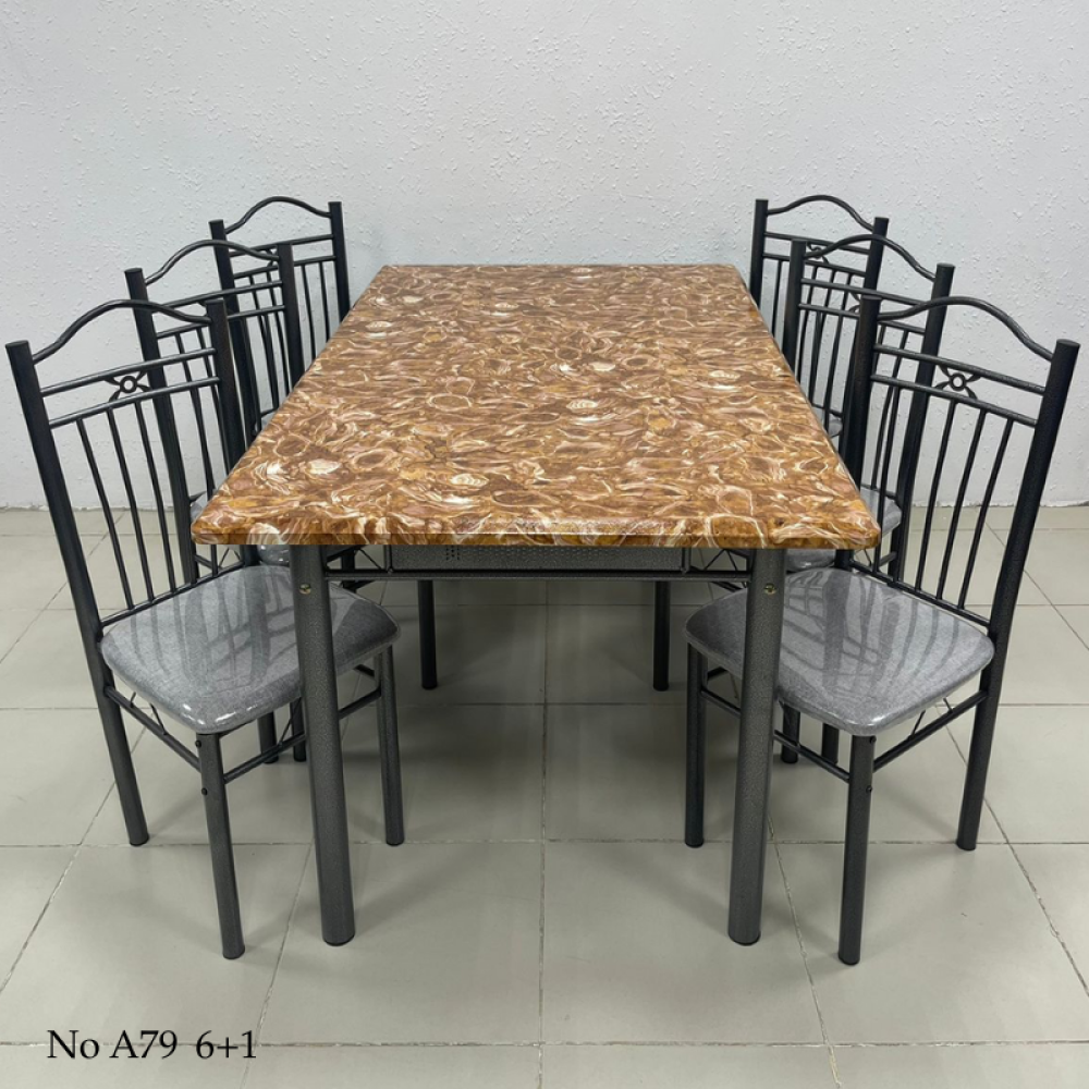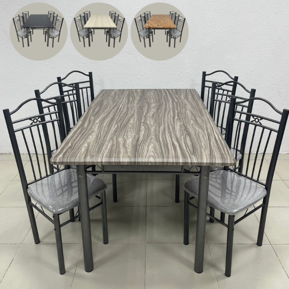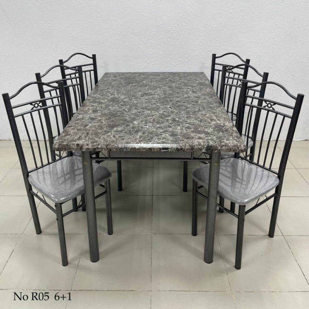طقم طاولة طعام مصمم على الطراز الكلاسيكي القديم بوجود بعض التفاصيل الناعمة الحديثة التي تضفي عليه لمسة من العصرية، هذا الطقم مؤلف من طاولة مصنوعة من الخشب بديل الرخام المميز بمقاومته للخدش وسهولة تنظيفه والمزين بألوان متداخلة كالرخام الطبيعي، ومجموعة من الكراسي مصنوعة من الحديد المتين ومزودة بمقعد منجد للحصول على الراحة أثناء الجلوس، هذا الطقم مناسب لغرف الطعام الفاخرة وديكورات المطاعم والمقاهي ذات الطابع الكلاسيكي الفخم.