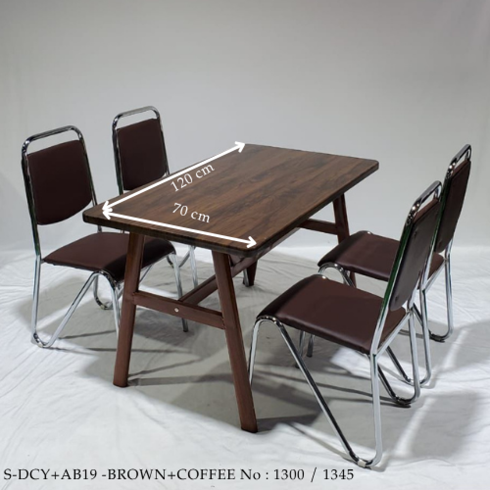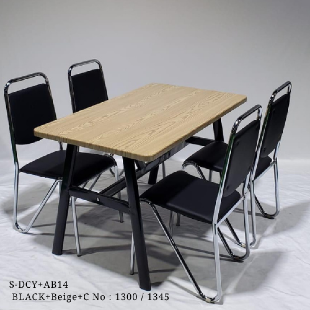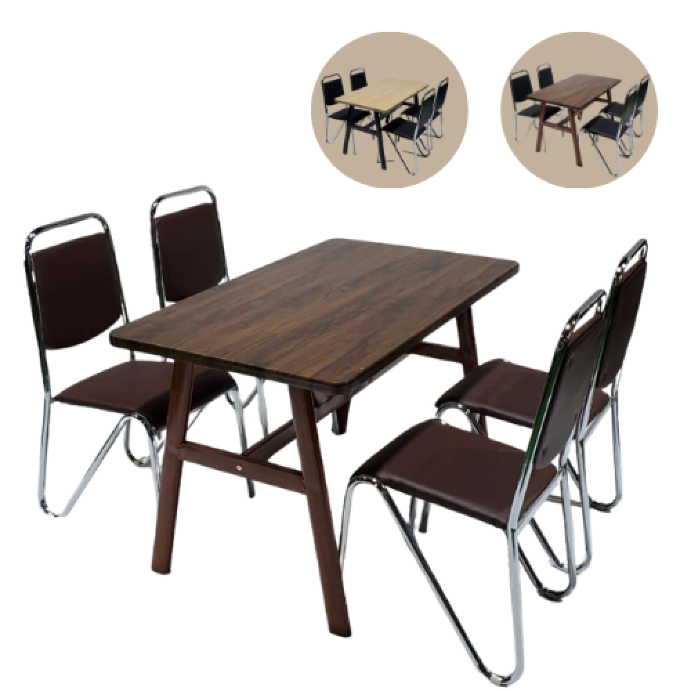 - الخامة: سطح خشبي + أرجل معدنية للكراسي والطاولة