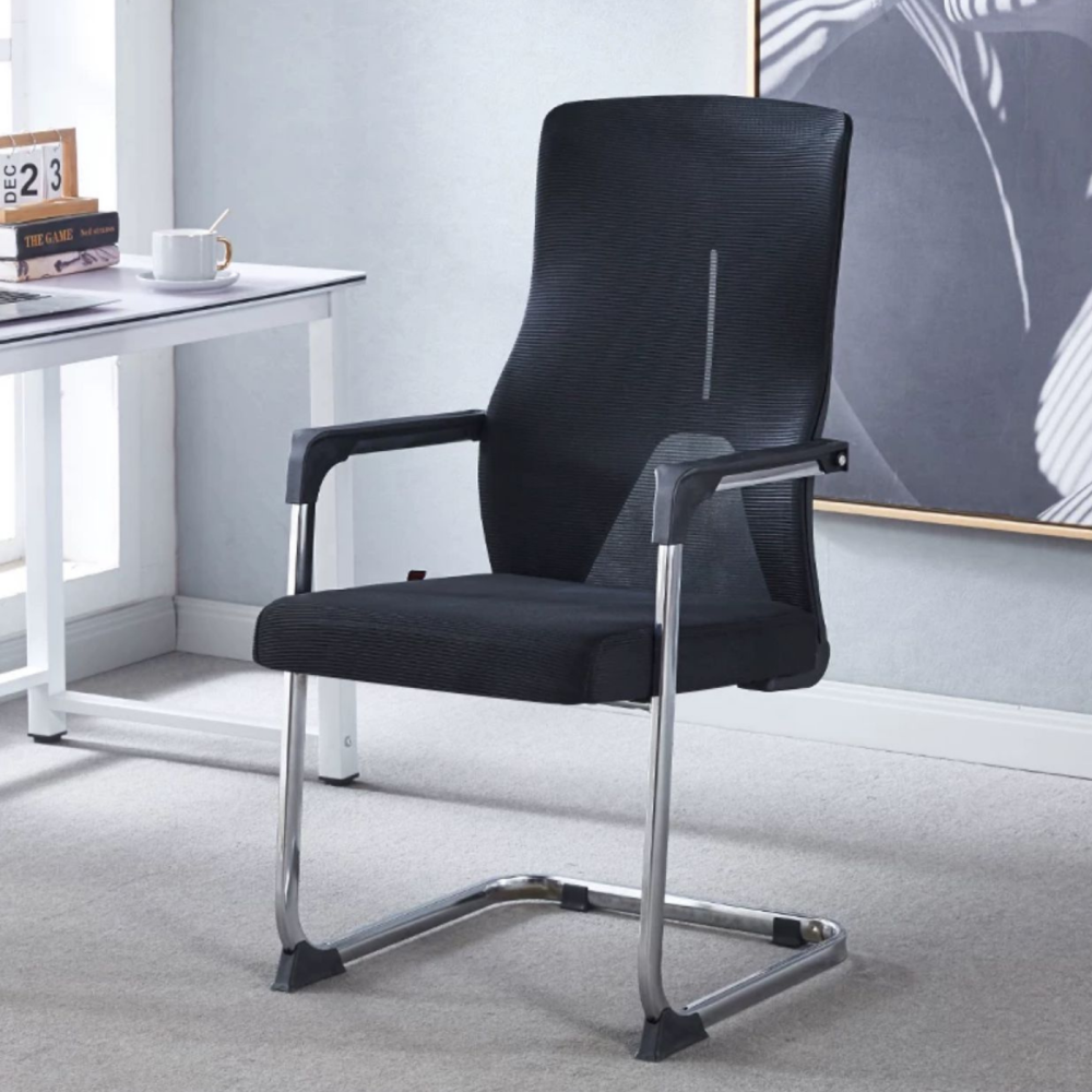 طقم كراسي مكتب ثابتة، متوفرة بلون أسود، تتميز بتصميم عصري وأنيق يضفي لمسة من الفخامة على أي مساحة، مصنوعة من مواد عالية الجودة تضمن المحافظة على متانتها لسنين طويلة، مع توفير الراحة القصوى أثناء الجلوس والقيام بالأعمال المكتبية.