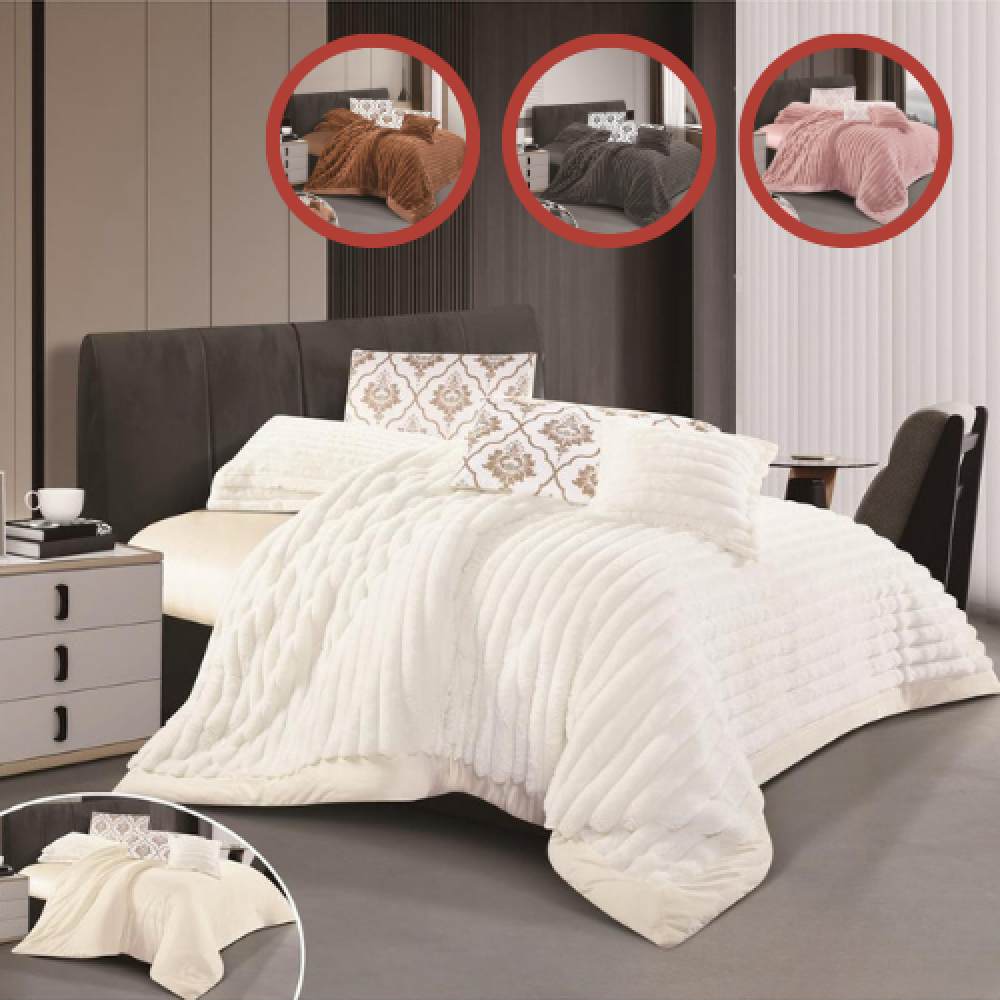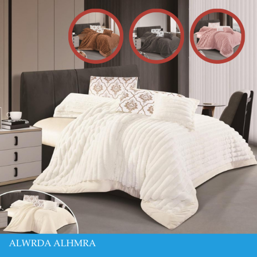طقم مفرش نفر ونص ونفرين مخمل مقلم عدة الوان