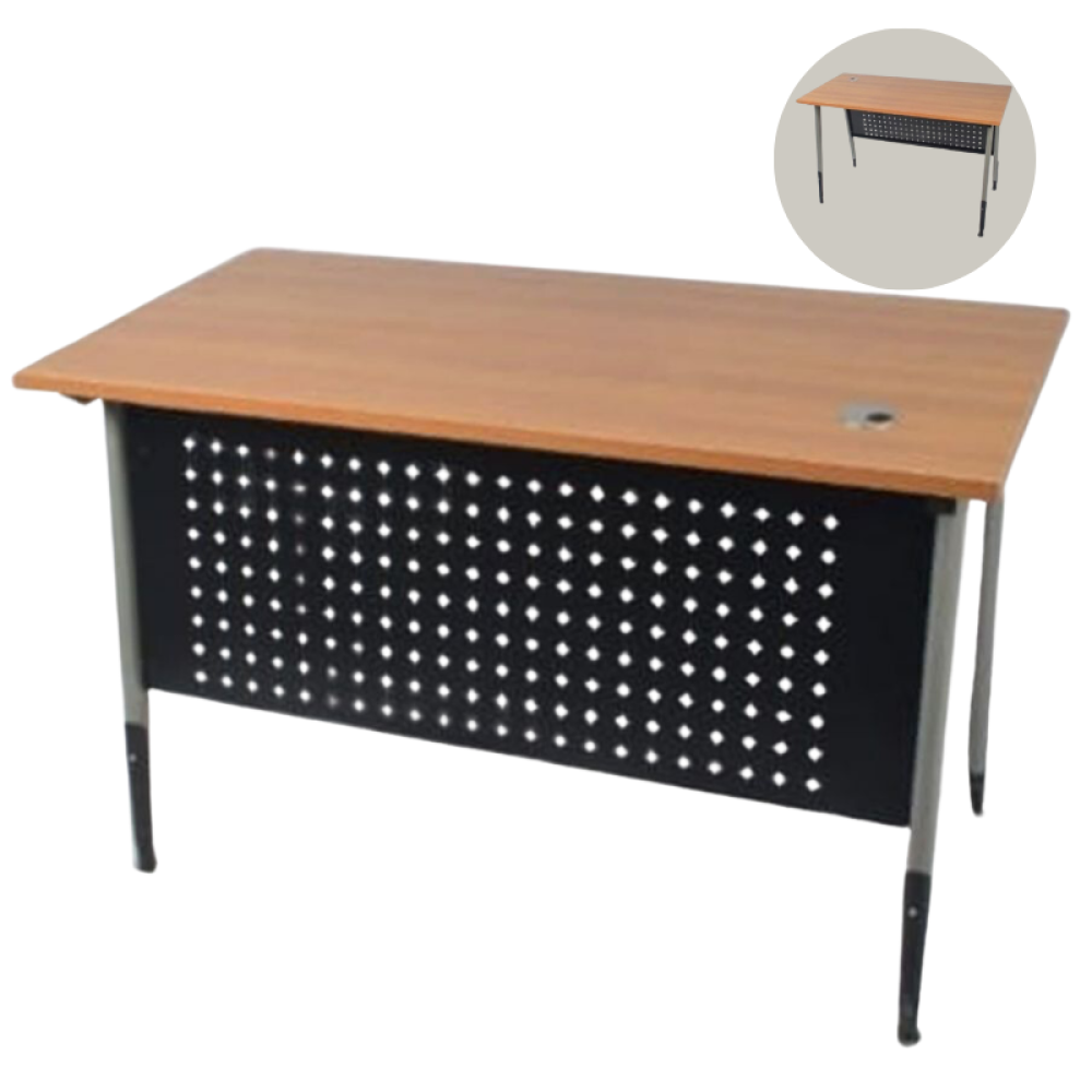 طقم مكاتب عمل مؤلف من اثنين مكاتب يتميز المكتب بتصميم عملي للغاية كونه مصنوع من الحديد المقاوم للصدأ والكسر، مزود بوجه مغلف بالفورميكا المقاومة للماء والبقع وبالتالي سهولة التنظيف بمنشفة ناعمة للحصول على سطح لامع، ومزود بقطعة أمامية من الحديد مزينة بنقوش مفرغة بشكل نجوم لحجب الرؤية والجلوس براحة اثناء تنفيذ الأعمال، هذا المكتب مناسب للمنزل كطاولة دراسة أو لمكاتب العمل الكبيرة والمجمعات التجارية.