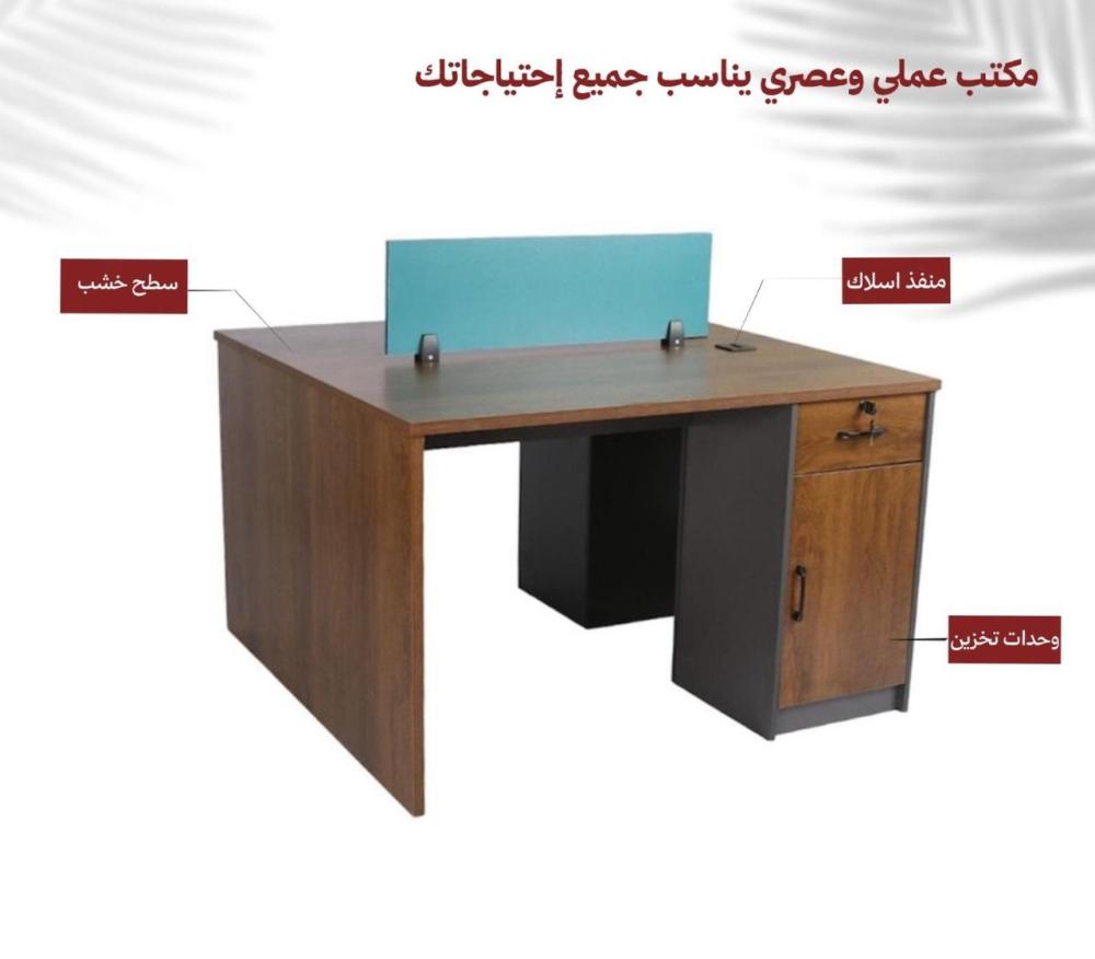 ضمن مجموعة الأثاث المكتبي المختارة لكم في متجر ستار هومي نقدم لكن هذا المكتب الكلاسيكي المميز بتصميم مزدوج لموظفين يفصل بينهما حاجز بشكل مستطيل لتوفير بعض الخصوصية، هذا المكتب مصنوع من الخشب الطبيعي الفاخر ومزود بخزانة جانبية لوضع مستندات العمل بالإضافة إلى درج مزود بقفل لوضع بعض الأغراض الشخصية وأوراق العمل الهامة.