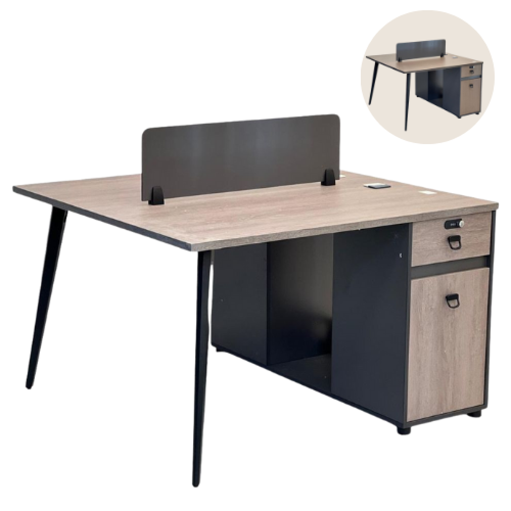 يتضمن وحدة تخزين جانبية بدرج وسحابات، بالإضافة إلى أدراج مدمجة في المكتب الرئيسي لتوفير مساحة منظمة.