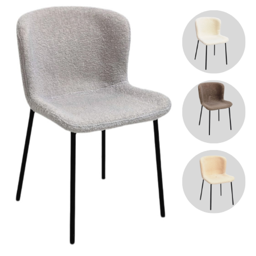 طقم مكوّن من كرسيين بتصميم مودرن أنيق، مصنوعين من قماش البوكليه الفاخر لمظهر جذاب ولمسة ناعمة. مثالي لطاولات الطعام أو ركن القهوة ويضفي لمسة راقية لأي مساحة داخلية.