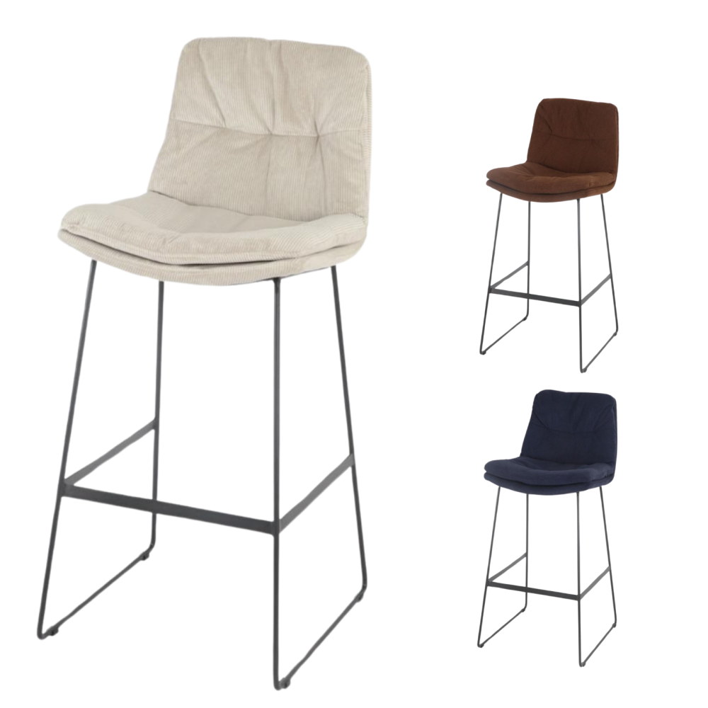 طقم كراسي بار مؤلف من كرسيين مصنوعان من الحديد المتين المقاوم للكسر والاهتراء ومزودان بمقعد ومسند ظهر منجدان لتوفير الراحة اثناء الجلوس، هذه الكراسي متوفرة بعدة الوان.