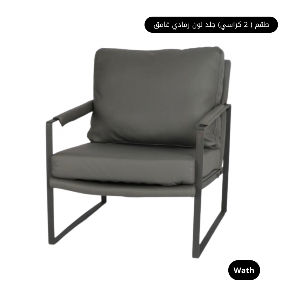 طقم كراسي مؤلف من كرسيين، كل منهما مصنوع من أجود أنواع الاسفنج الناعم والطري والمغلف بطبقة من الجلد الطبيعي المقاوم للاهتراء، هذا الكرسي مصمم بارتفاع منخفض وحجم كبير ومزود بمساند يد جانبية لتوفير أعلى مستوى من الراحة اثناء الجلوس لساعات طويلة، إن اختيار الطقم سوف يشكل إضافة مميزة وعصرية لديكور المكتب أو المنزل.
