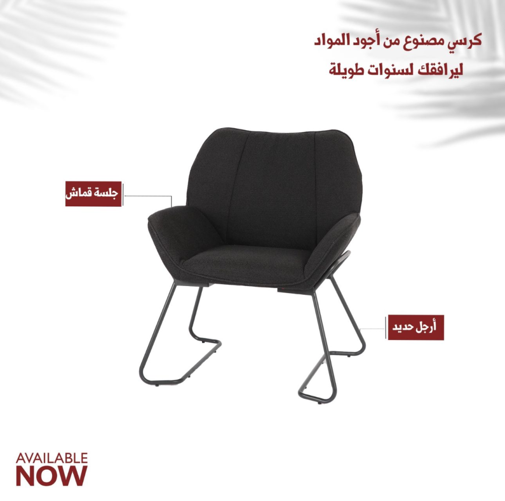 طقم كراسي لركن القهوة في المنزل أو مكتب العمل يتميز بتصميم بحجم كبير مزود بمساند أذرع مائلة للخارج مما يمنح الكراسي حجم إضافي، مصنوعة من أجود الأقمشة الفخمة ومبطنة بالإسفنج الطري لتوفير الراحة أثناء الجلوس، الكراسي مزودة بحامل معدني مقاوم للكسر والماء.
