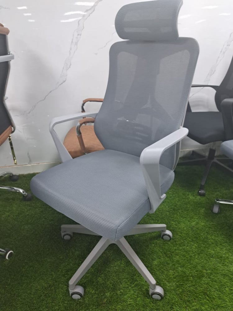 كرسي مكتب مصنوع من أجود المواد الفاخرة المقاومة للكسر والاهتراء، ومميز بمسند ظهر شبكي لتوفير نفوذية الهواء لمزيد من الراحة أثناء الجلوس والعمل لساعات طويلة بالإضافة إلى مسند للرقبة لدعم منطقة الرقبة وحمايتها من الامراض المحتملة، الكرسي مزود بمكانزم تعديل الارتفاع بما يتناسب مع ارتفاع طاولة العمل.