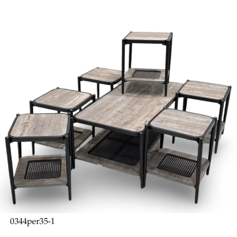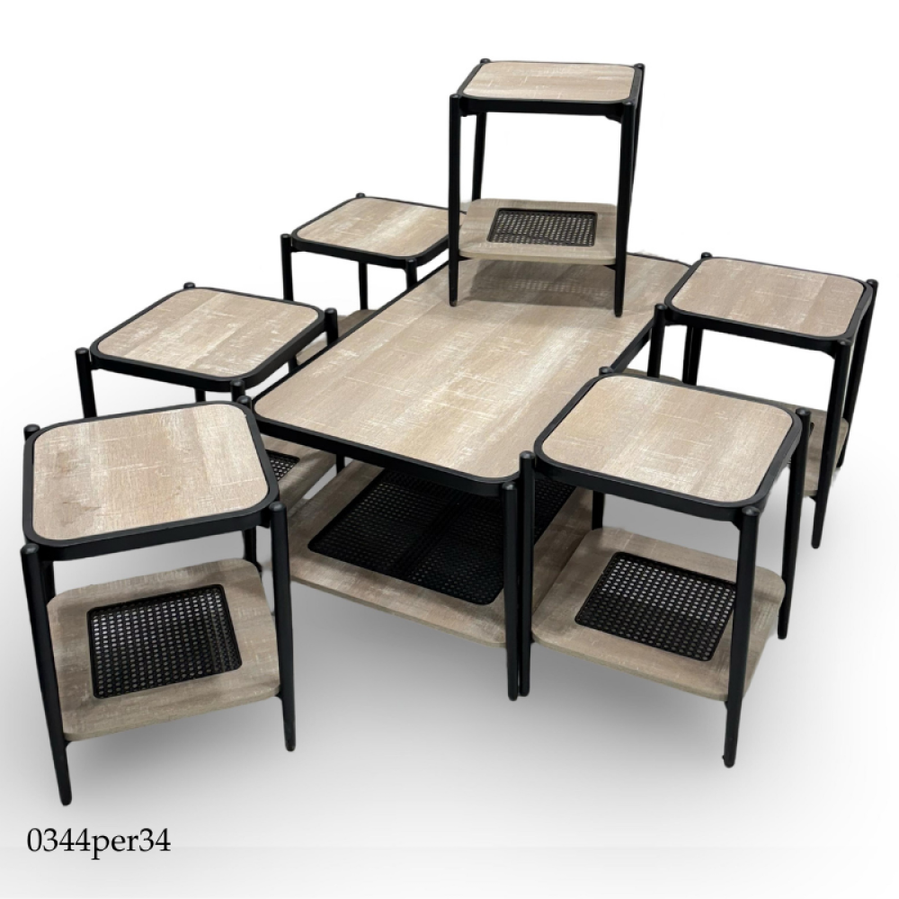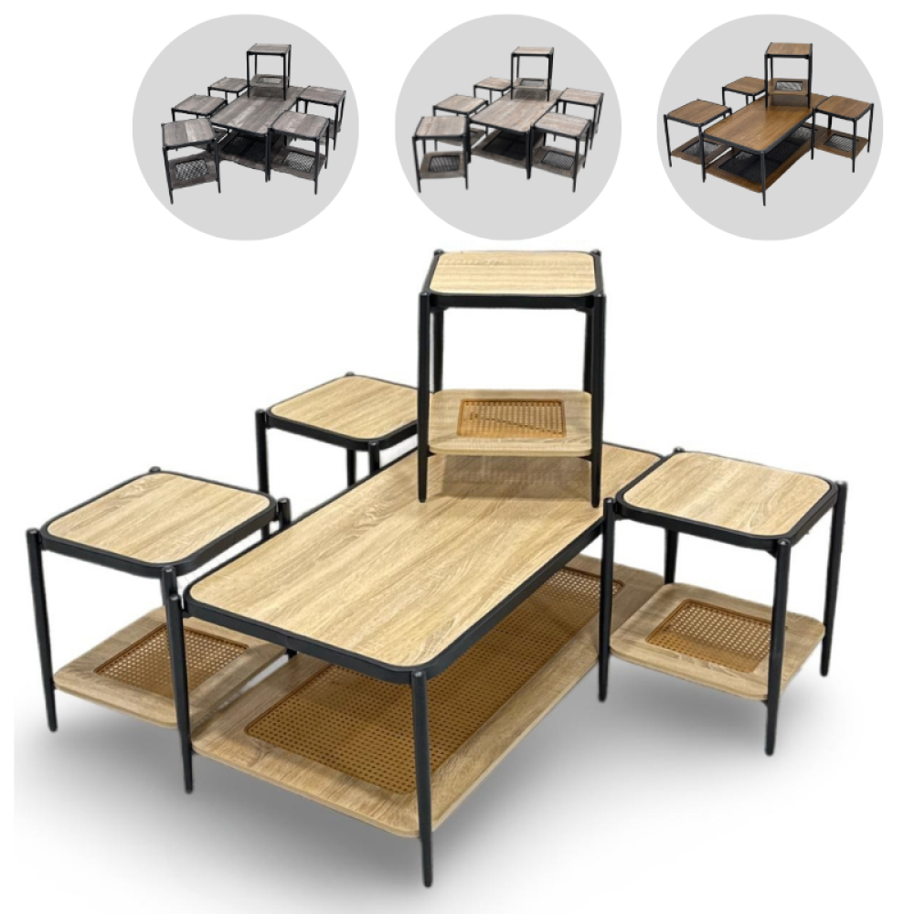 طقم 4و6 طاولات خشب وراتان عدة الوان