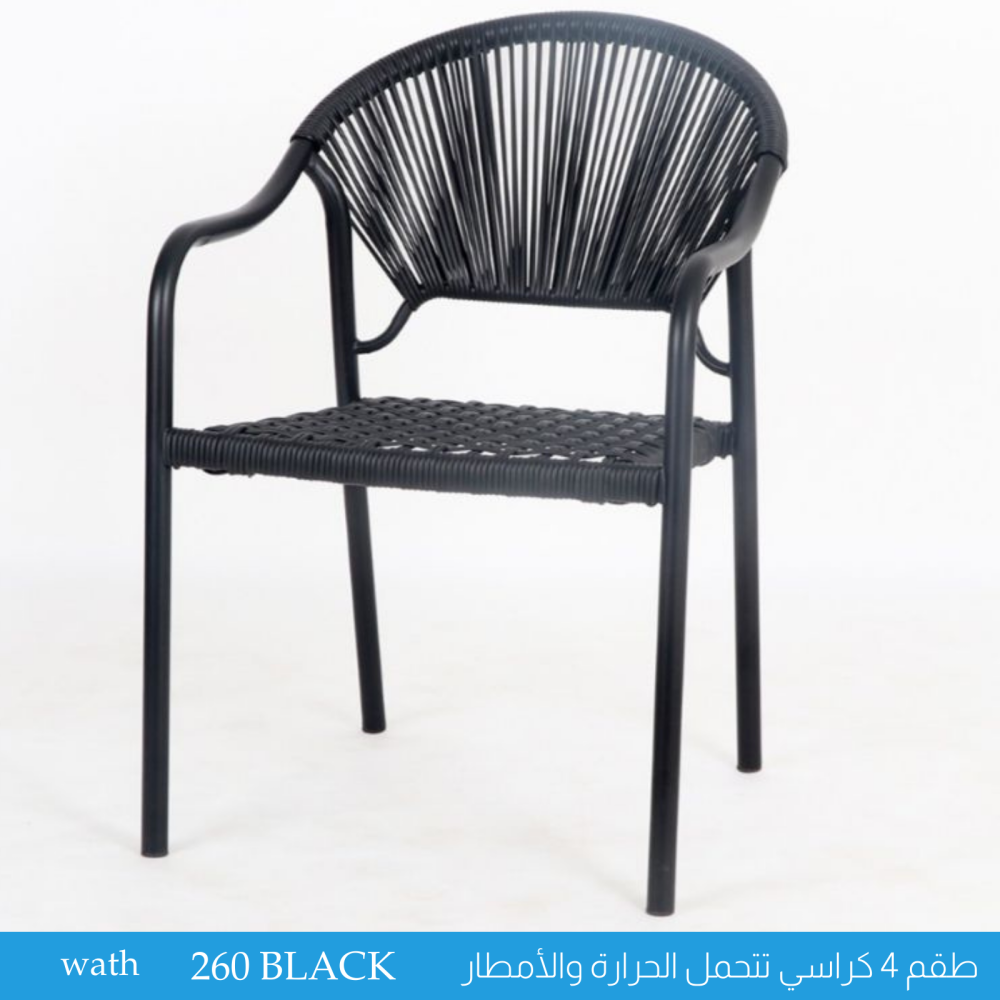 4. طقم 4 كراسي جلوس بحبال لون اسود يتحمل الحرارة والأمطار