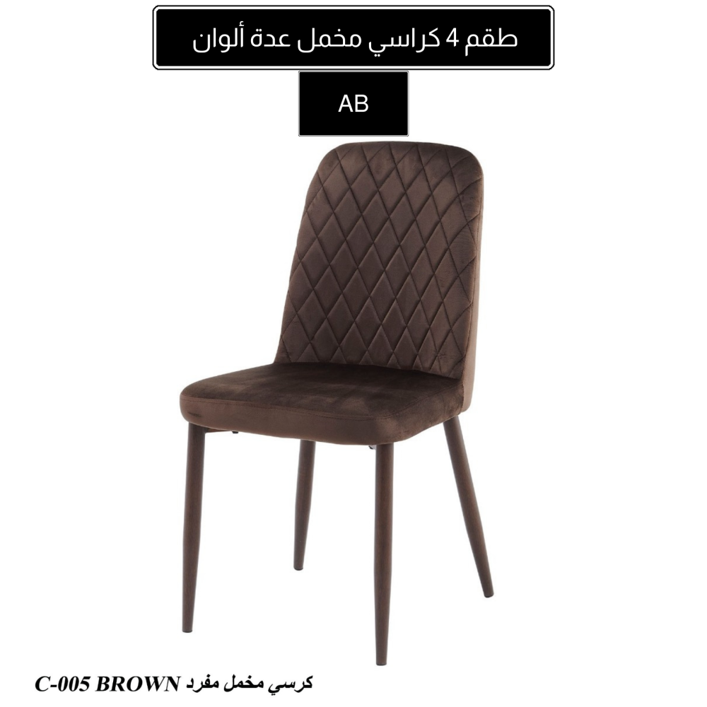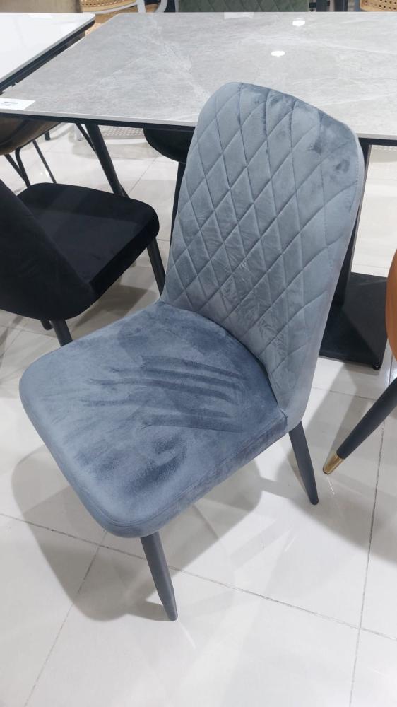 طقم كراسي طعام مصنوع من المخمل الناعم ومبطن بطبقة من الإسفنج المضغوط لتوفير الراحة أثناء الجلوس، يتميز مسند الظهر بتصميم مزين بدرزات بشكل معينات تضفي لمسة من التميز والاناقة، هذا الطقم مناسب لطاولات الطعام المنزلية أو للمطاعم والمقاهي الفاخرة.