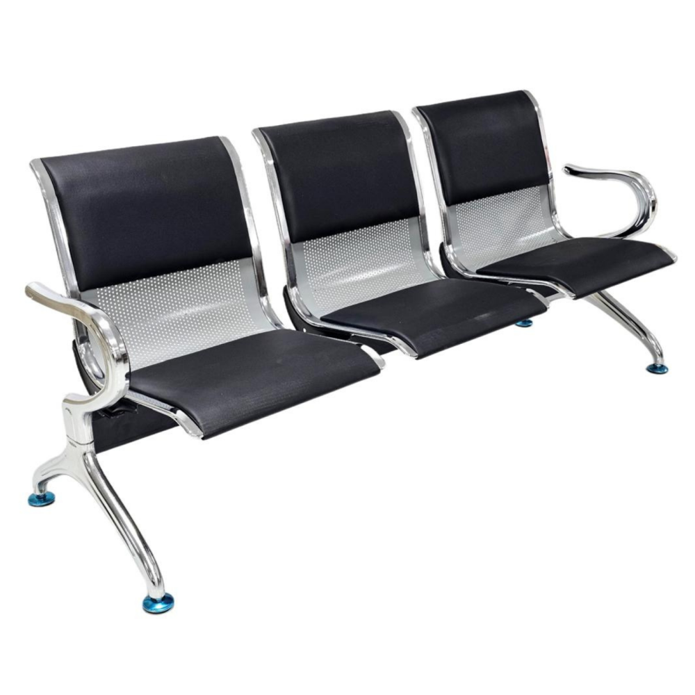كرسي انتظار مصمم بشكل خاص لمواقف الباصات والمجمعات التجارية والطبية، مصنوع من أجود أنواع المعادن المتينة والمقاومة للكسر، يتميز بتصميم انسيابي يتوافق مع منحنيات الجسم لتوفير أعلى درجة من الراحة أثناء الجلوس كما أنه مزود بمقاعد ومساند ظهر مصنوعة من الجلد الناعم والطري.