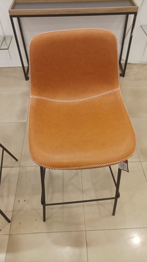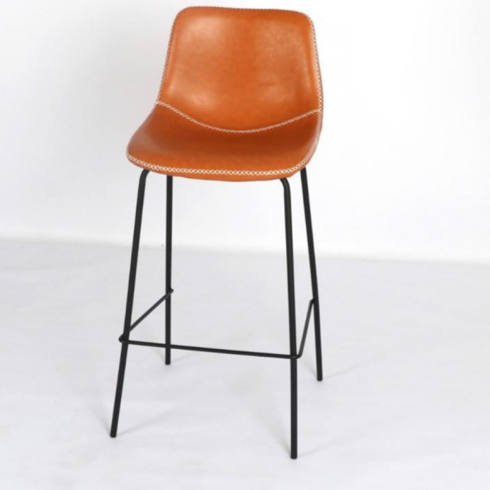 كرسي بار مصنوع من الجلد الطبيعي الفاخر ومزود بمقعد ومسند ظهر مقعران لتوفير أعلى مستوى من الراحة أثناء الجلوس، بالإضافة إلى أرجل من الحديد المتين مزودة في الأسفل بمسند للأقدام، هذا الكرسي يمكن استخدامها في المطبخ أو ضمن ديكور المطاعم والمقاهي.